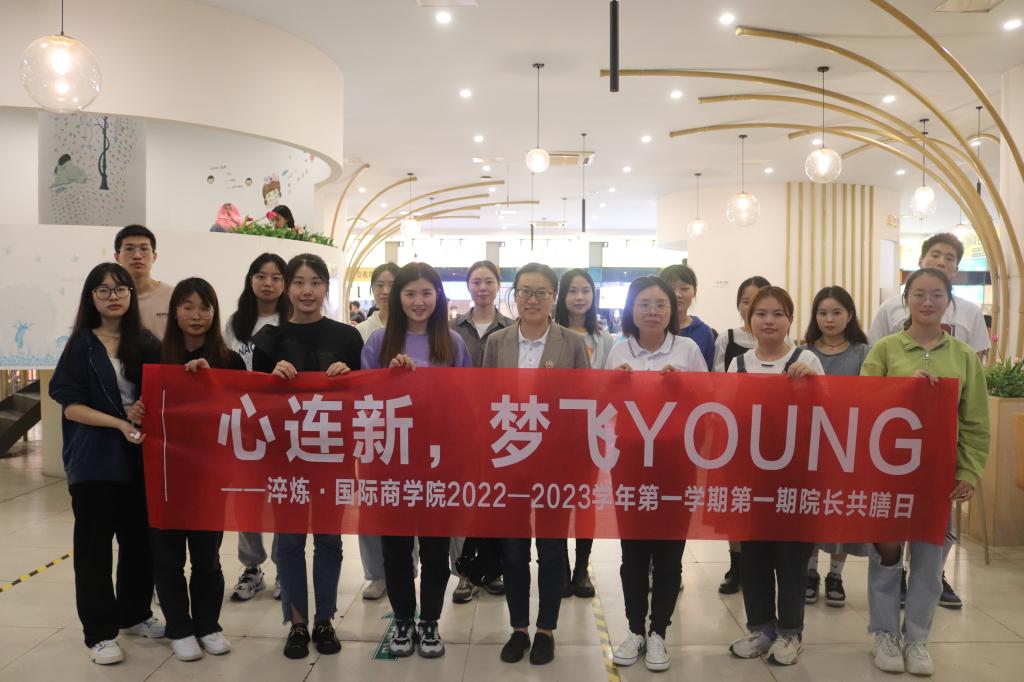 为了更好地了解学生的学习、生活情况,淬炼&国际商学院就业助理团商科公关部于9月28日下午在三江食堂2楼开展了“心连新,梦飞YOUNG”——淬炼&国际商学院2022-2023上学年第一期院长共膳日活动。本次共膳日邀请到了曾璐副院长、李义红老师、杨鸿杰老师、肖齐老师、廖进老师、杨子莹老师以及2022级专升本学生代表。