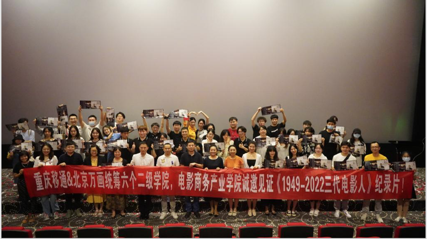 6月23日晚,为展现电影商务产业学院精英班成果,表彰第11届万画影城实习实训班、电影商务产业学院精英班中表现优异的学员,《1949-2022三代电影人》首映会暨第11届万画影城实习实训班、第一期电影商务产业学院精英班结业典礼于万画影城3号厅顺利举行。北京万画影业投资有限公司总经理龙用意、北京万画影业总经理张燕、北京万画影业影城经理杨磊、北京聚合影联文化传媒有限公司总监黄之乐、重庆移通学院校长助理、电影商务产业学院院长张平、电影商务产业学院副院长陈晓曼、淬炼国际商学院副院长曾璐、钓鱼城科幻学院副院长程晓娇、电影评论中心主任彭可、重庆移通学院书院部部长穆春江、重庆移通学院团委老师姜馨怡、电影商务产业学院项目导师李骥、李菡艺、曹洋洋老师等莅临现场,同电影商务产业学院的同学们一起为本次典礼增光添彩。