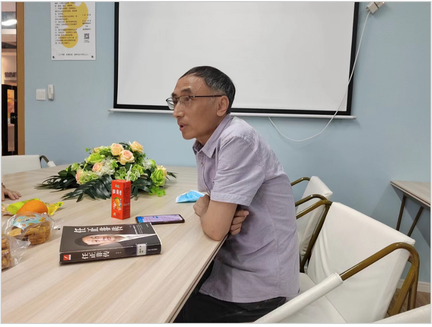分享会首先由董道进老师发言。董老师对任正非的个人经历、奋斗历程感触特别深,任正非读完大学后,应征入伍,成为一名基建工程兵。之后又退伍,成为国企员工,又因工作不顺利,进行集资创立华为公司。董老师曾在企业工作多年,从任正非的奋斗经历联想到自己的成长经历,董老师谈到过去的经历不会白费,它一定会在将来的某个时候为你创造价值,虽然自己才刚从事大学教师这个职业,但他相信自己能够在这个行业里努力奋斗成为一名较高造诣的老师。