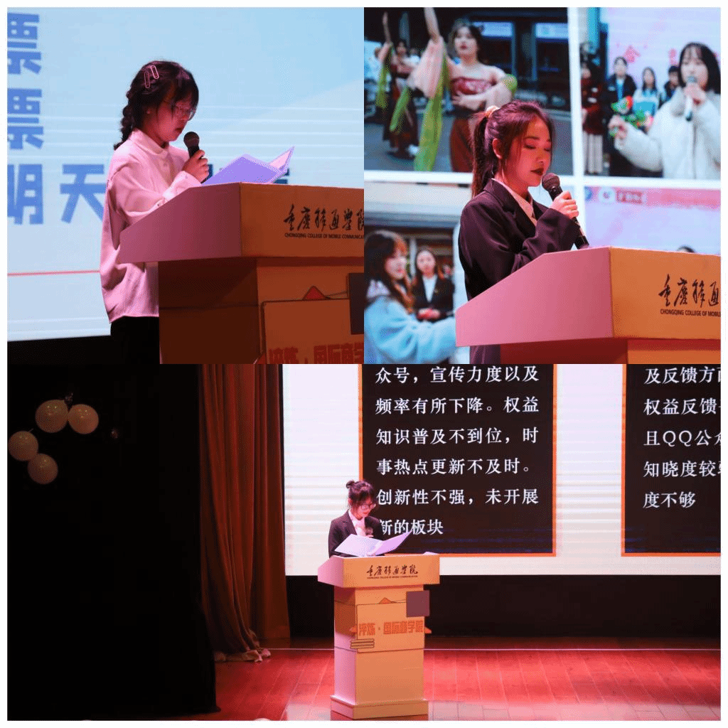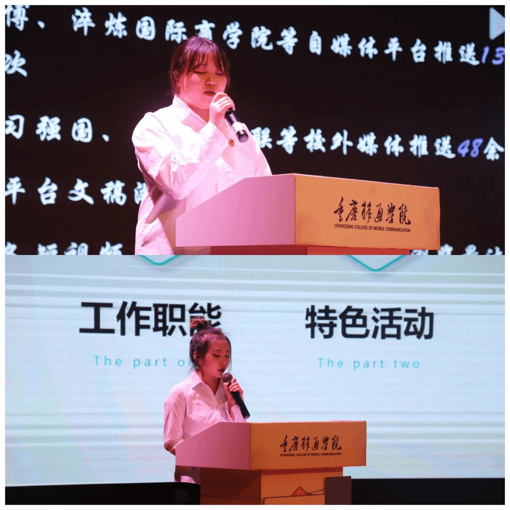 一年奋斗,热血难凉。回顾视频中,各部门的合照从眼前划过,一张张照片上,有笑容、有搞怪,也有陪伴。一年的相知相伴、并肩作战,是伙伴,也是家人。“你好,我的部长”,由綦江校区小干事录制的暖心视频让全场师生为之动容,虽相隔百里,并未阻碍干部与干事之间的感情。