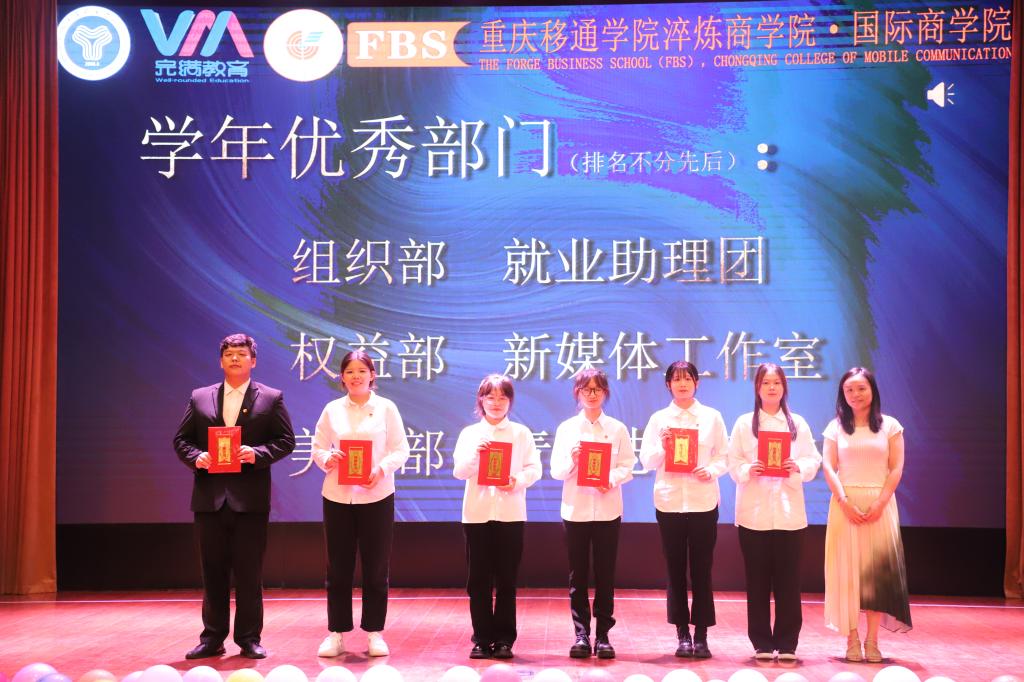 因为热爱,所以坚持。述职完毕后的颁奖仪式,是对本学年在商院工作中,优秀干部及优秀部门的肯定。台上的他们,浑身散发着光芒,而光芒的背后,是他们的热爱与坚持,也是他们在这一学年为商院建设的努力与汗水。因为过去的奋斗,所以也有了现在的闪耀。淬炼·国际商学院学生组织也将永远记得大家这一年的不遗余力。