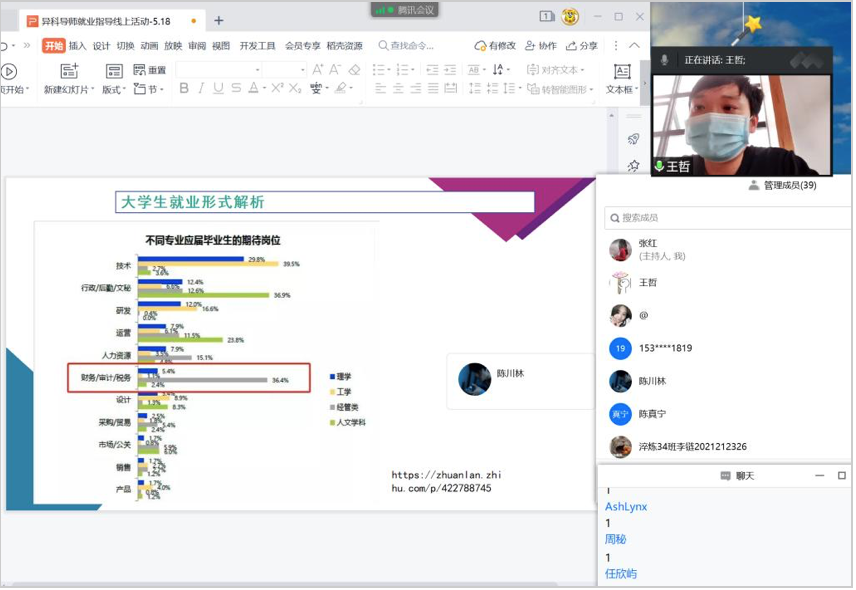 本次线上活动,是本组异科导师活动,针对前期一对一了解学生情况之后的一次总结,与不同学院的异科导师联动,也是希望同学们,能正确看到就业形式,早规划,早定位,后续就业顺利。