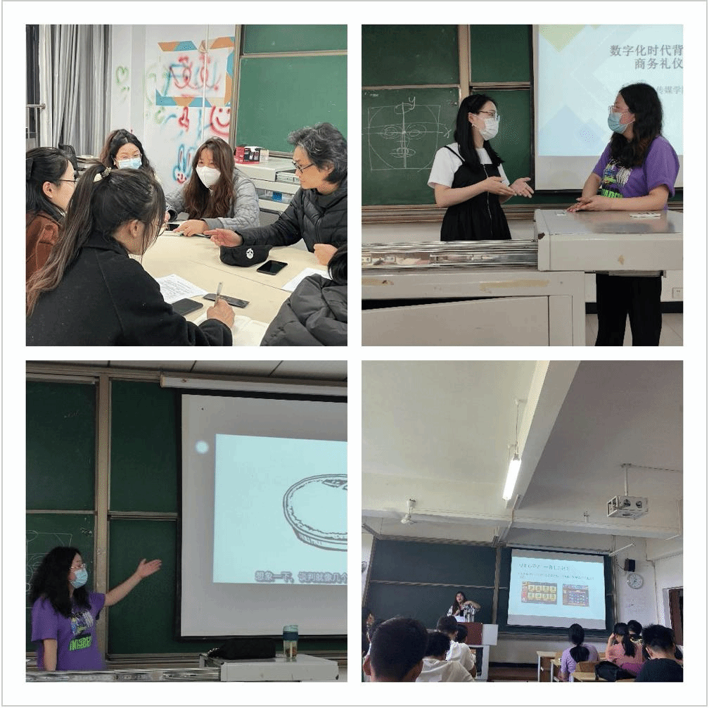 2022年4-5月,品研工作室的10位老师按计划积极展开了具体的交叉融合授课活动,此次交叉融合授课涉及10门课程,共计20学时。各位老师结合自身专业优势,面对不同专业的学生,深入分析学生学情和学科特点,精心设计课堂环节,挖掘交叉融合点,积极探索不同的讲授方式,大胆创新,运用多种教学手段,充分调动学生的课堂积极性,取得了良好的教学效果。