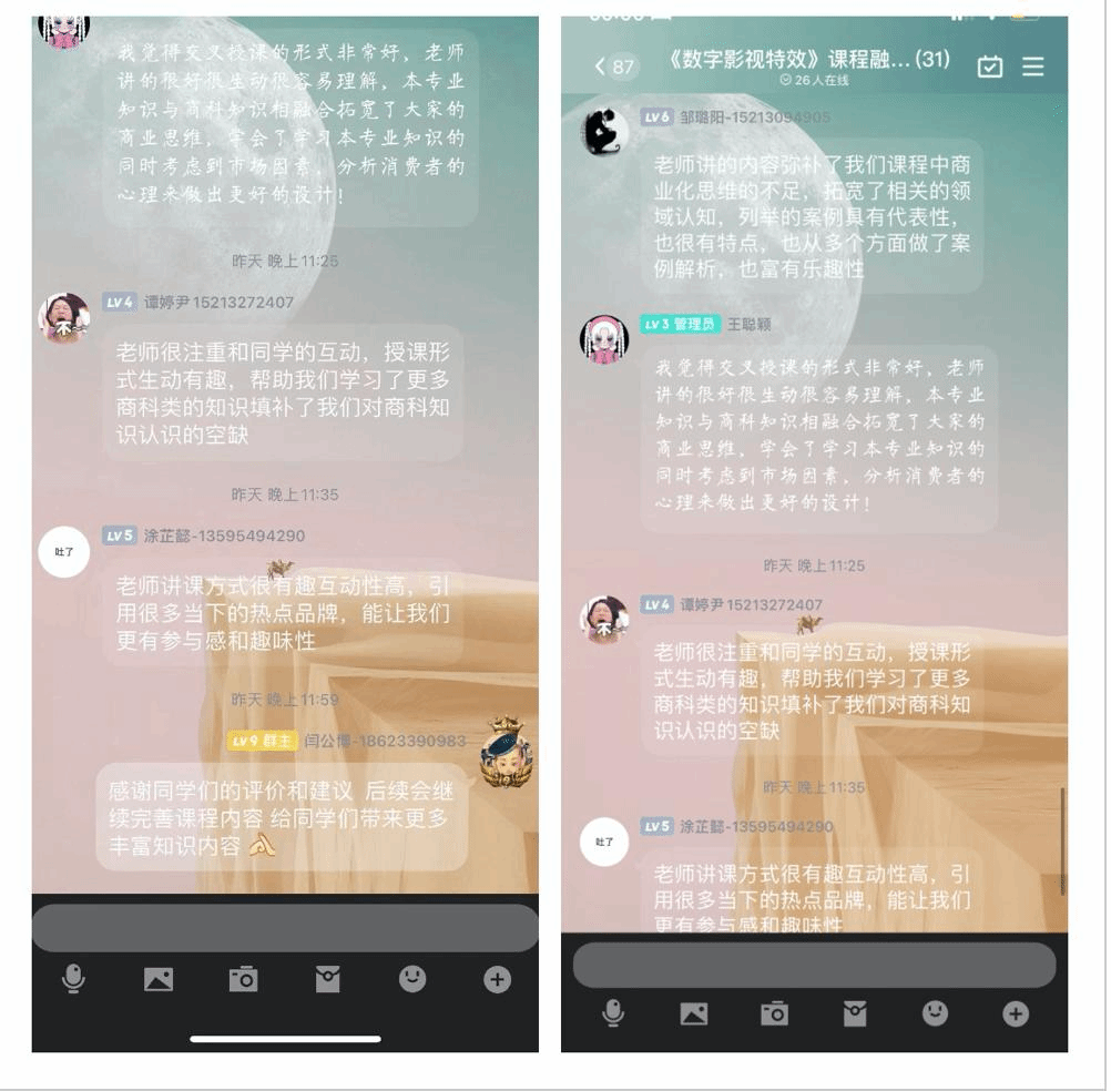 闫公博老师将所授《数字影视特效》与《消费心理学》课程交叉,从产品本身设计角度,以品牌的创建、IP形象实际案例介绍,给商院同学们带来设计制作过程与用户选择的双向融合。刘贞珍老师通过蜜雪冰城的案例,与艺传同学们探讨品牌在宣传推广时,是如何考虑利用消费者心理,将消费者心理与市场定位、产品包装、宣传方式相结合。