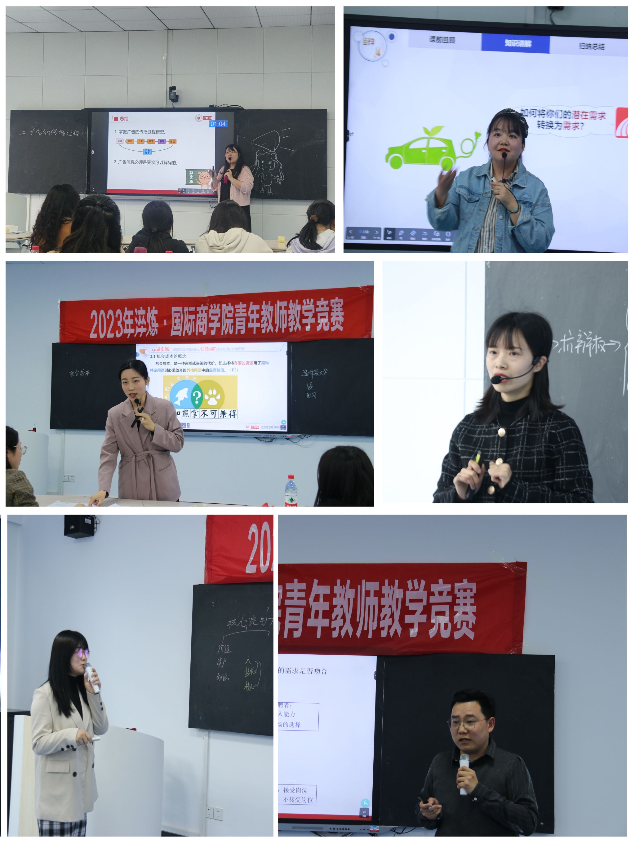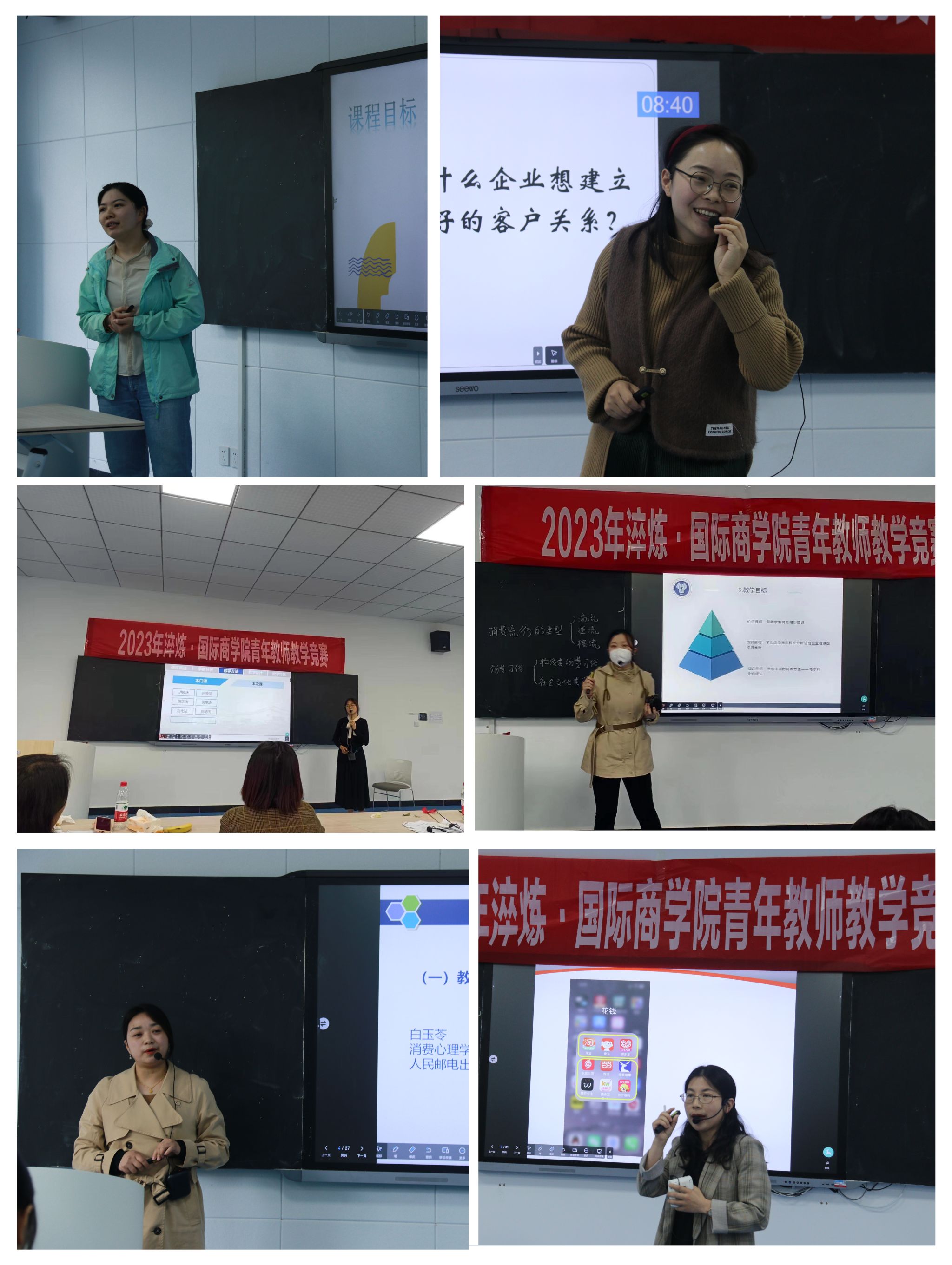 为引导青年教师进一步强化立德树人理念,聚焦课堂,积极探索有效教学的途径和方法,进一步提升青年教师的教学水平和业务能力,促进教师参与课程教学改革。3月22日下午,淬炼·国际商学院(合川校区)分别于5203、5204智慧教室举行了学院青年教师教学竞赛。本次比赛共有14名青年教师参加,由淬炼·国际商学院副院长陈晓曼、教研室主任李魁梅、李义红、谭小珂、张云潇和多位教学经验丰富的骨干教师担任评委。