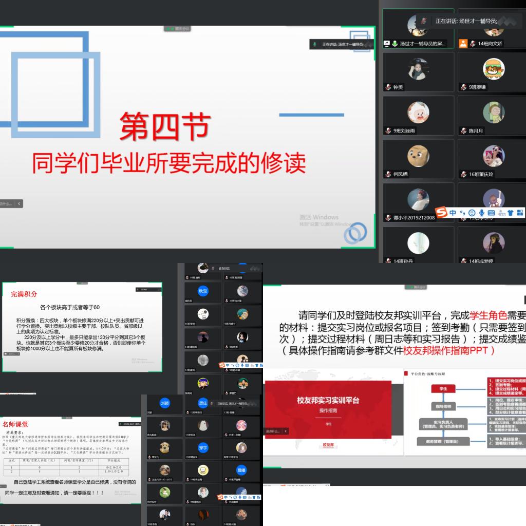 奋斗是青春最亮丽的底色,行动是青年最有效的磨砺。作为大四学生,在成为一名打工人之前,需完成学校对本专业所安排的培养方案,修读相应学分,为顺利毕业打好基础。汤老师为同学们讲解了毕业所需学分类别、分数、修读方式等,希望同学们及时关注年级群消息,关注自己修读学分进程,完成相应资料填写等。