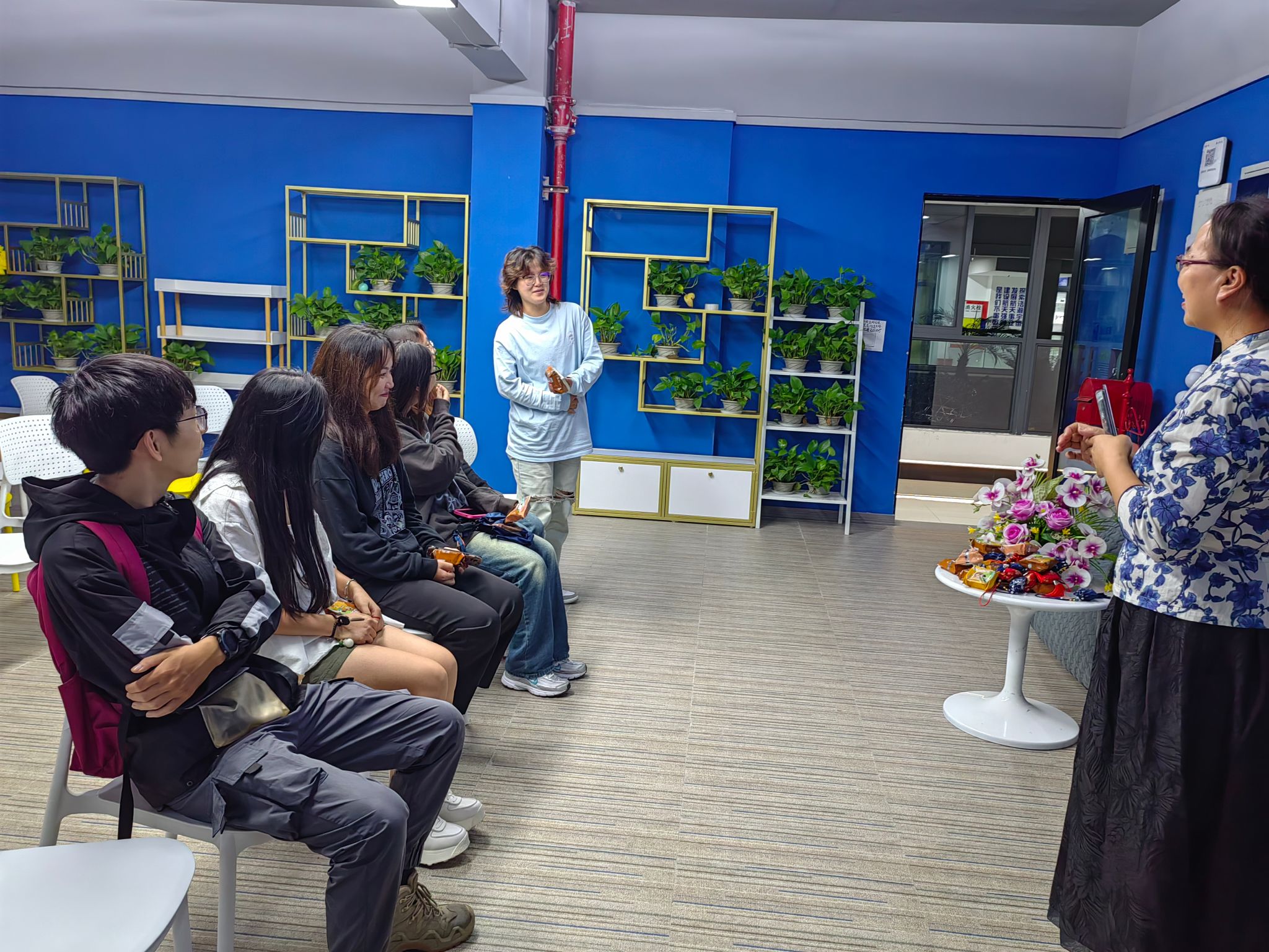 活动伊始,李红艳老师将提前准备的各种口味的云腿月饼摆放在会议室,还有老师们亲自包好的各色精美薰衣草香包,使同学们一进会议室便对本次活动充满着好奇和期待。彭润亚老师主持了本次活动,对参会的各位老师和同学们一一做了介绍,并详细讲解了本次活动的游戏规则。