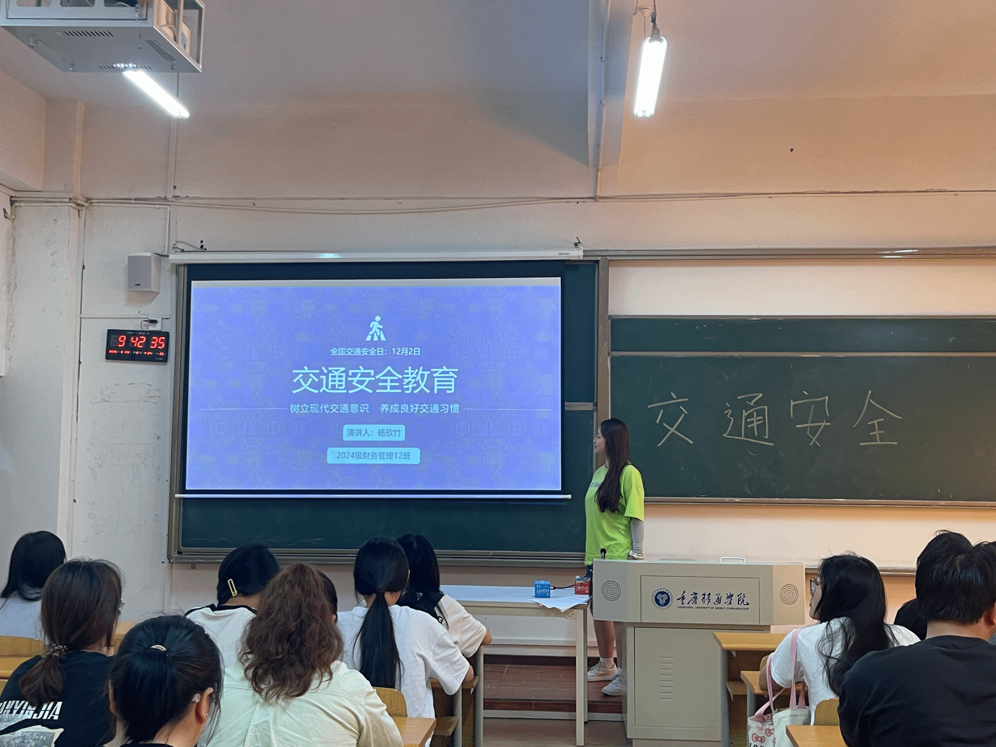 当我们每天踏上通勤路,或是骑行穿梭街巷、步行穿越路口,亦或是乘坐公共交通奔赴目的地,交通出行早已成为生活的必需。2025年5月20日,淬炼商学院2024级财务管理12班在教室开展了一场以“树立现代交通意识 养成良好交通习惯”为主题的交通安全教育班团活动。此次活动旨在提高大家的交通安全意识,普及交通安全知识。