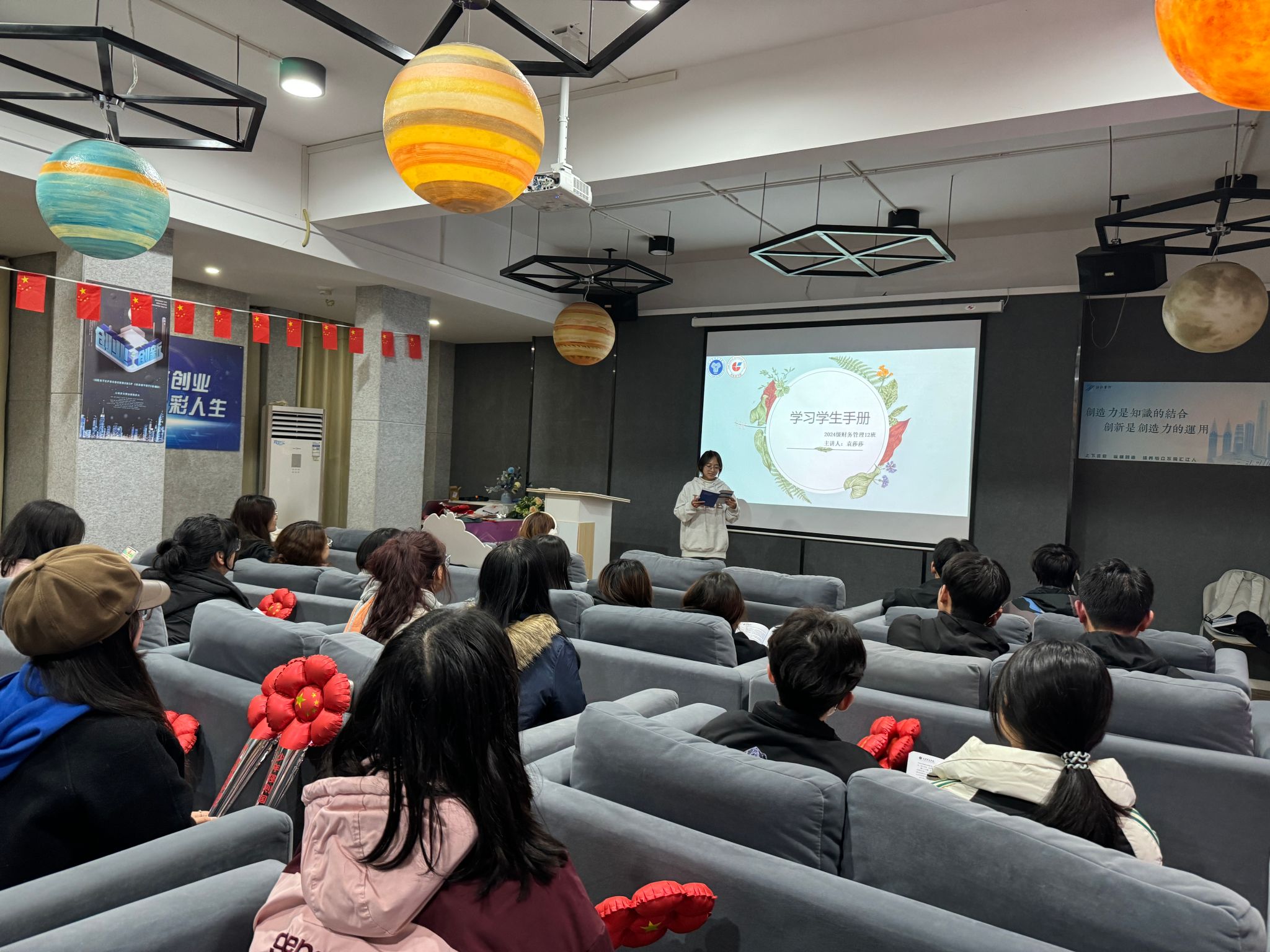 踏入校园,学生手册就是学生们在校园里的引路人,它是连接学生个体与学校整体管理体系的重要纽带,保障着校园生活的和谐、有序与高效运行。为了加强同学们更好地了解学校的规章制度以及各类学习要求和奖惩制度,2024年11月21日2024级财务管理12班全体同学聚集在汇江书院影音活动室开启了探索学生手册的旅程。