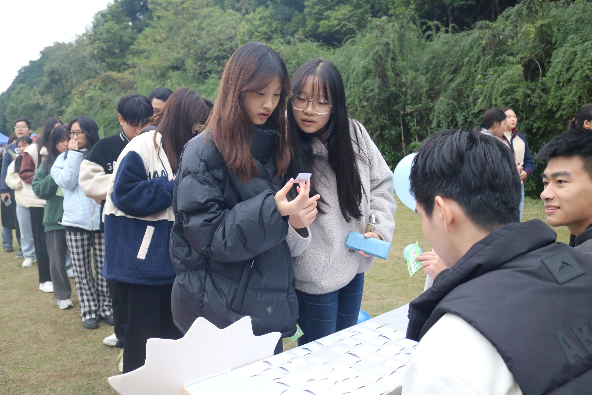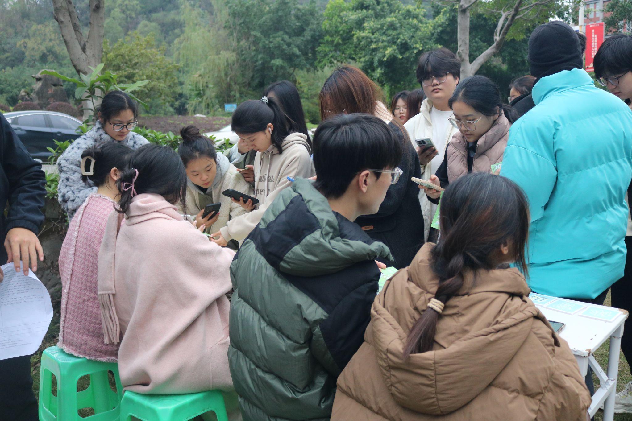 活动现场,尽管冬日凛冽,同学们纷纷踊跃参与各个摊位活动。在器械使用摊位,工作人员悉心讲解各种运动器械的正确使用方法,学会如何合理运用器械进行高效、安全的锻炼,避免因错误使用器械而导致的运动损伤。