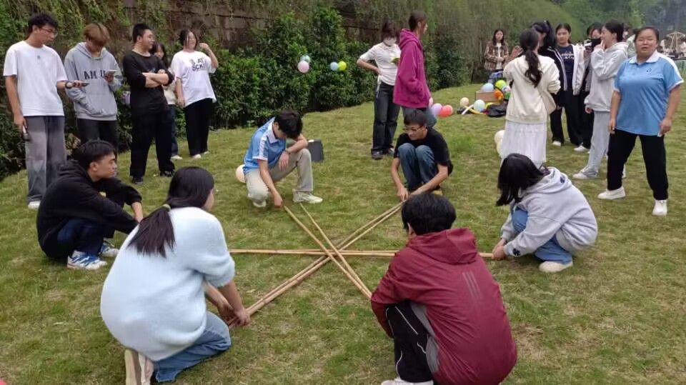 中华民族文化历史悠久,源远流长,作为各民族在历史长河中积淀下来的智慧结晶,不仅是民族身份和独特性的重要标志,更是社会和谐与持续发展的基石。它涵盖了语言、艺术、宗教、习俗、节日、服饰、音乐、舞蹈以及饮食等多个方面,是民族精神的集中体现。2024级工商管理04团支部于11月8日14:00在双子湖草坪开展“竹竿上的旋律”完满班团活动,此次活动旨在展现中华民族多元文化的独特魅力,竹竿舞的欢快节奏、抛绣球的浪漫风情以及扔康包的独特魅力,共同绘制出一幅绚丽多彩的民族风情画卷。