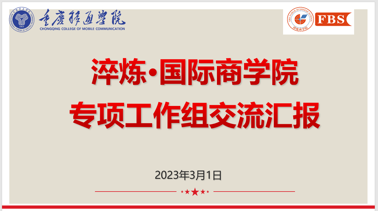2023年3月1日下午13:00淬炼•国际商学院于第五教学楼五楼商学图书馆开展专项工作小组交流汇报会,该会总结前期工作经验、规划本学期工作内容及目标。淬炼•国际商学院副院长曾璐、工商管理教研室主任杨宝石、市场营销教研室主任寇小玲、领导力提升课程教研室主任董道进、基础教研室主任李义红、国际商科教研室主任李魁梅、商业基础课程教研室主任谭小珂和各专项工作的老师们参加了此次交流汇报会。