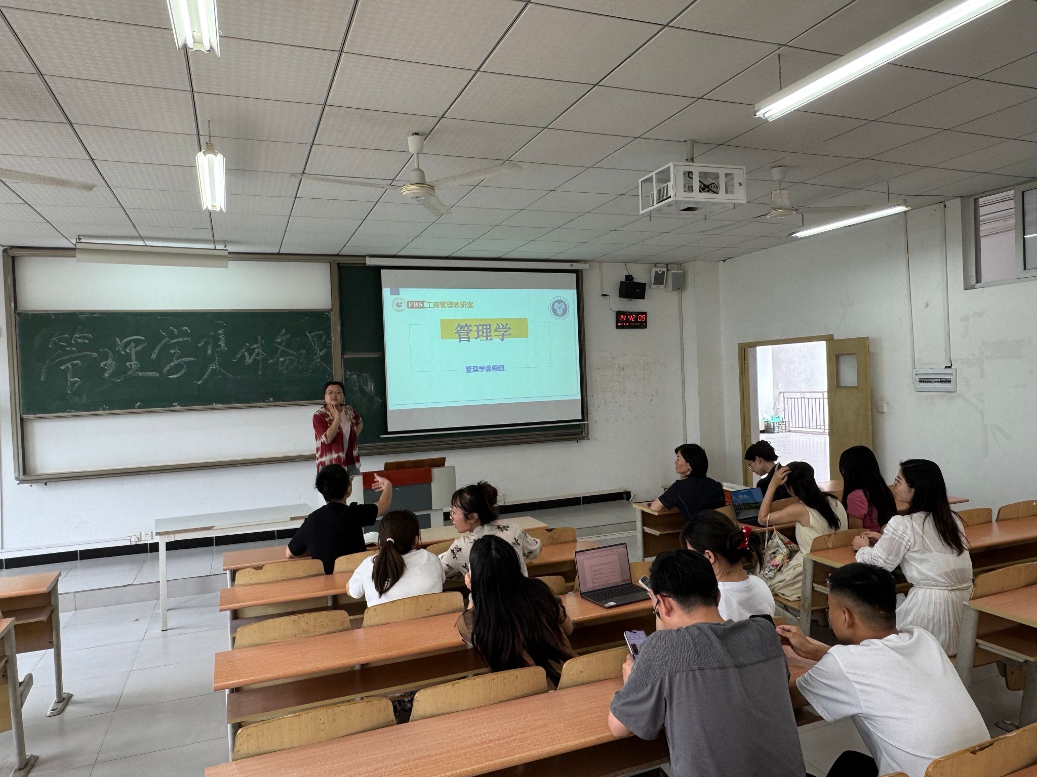 2025年5月28日下午15:30,淬炼商学院工商管理教研室管理学课程组全体教师举办集体磨课活动。课程组负责人杨瑶老师先系统介绍了《管理学》课程的总体建设情况、教学目标、核心内容框架以及当前在教学实践中面临的挑战与机遇,为后续的专题分享和深度研讨奠定了坚实基础。