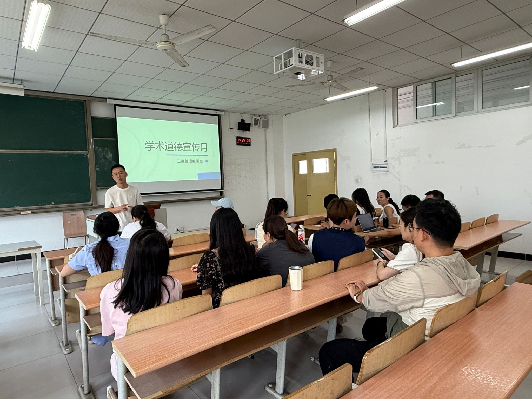 为深入贯彻落实教育部关于加强学术道德建设的相关要求,进一步弘扬严谨治学、求真务实的学术精神,淬炼商学院工商管理教研室于2025年5月14日组织开展了以“坚守学术诚信,弘扬科学精神”为主题的学术道德宣传月系列活动,全体教师积极响应参与,营造风清气正的学术氛围。