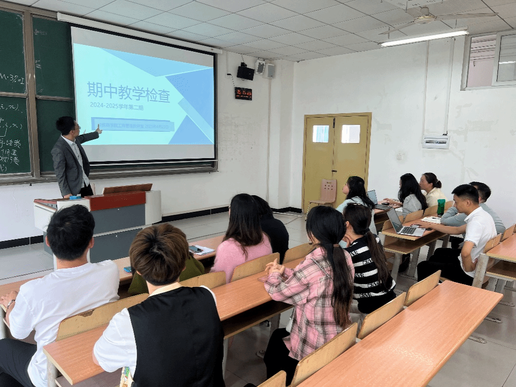 除此之外,为进一步规范教学管理,提升教学质量,工商管理教研室进行了2024-2025学年第二学期期中教学检查工作会议。本次期中教学检查会议围绕以下重点内容展开,首先,每位教师对各自课程教学计划执行情况进行核查,确保教学任务按质按量完成。其次,由课程负责人根据听课、评课等课堂质量反馈情况,总结课堂教学亮点与改进方向;最后,部分教师针对个别学生迟到、早退及课堂纪律问题进行讨论并提出整改措施,强调教师需加强课堂管理,联动辅导员共同优化学风。教研室要求全体教师以检查促提升,持续优化教学方法,注重培养学生实践能力与创新思维。