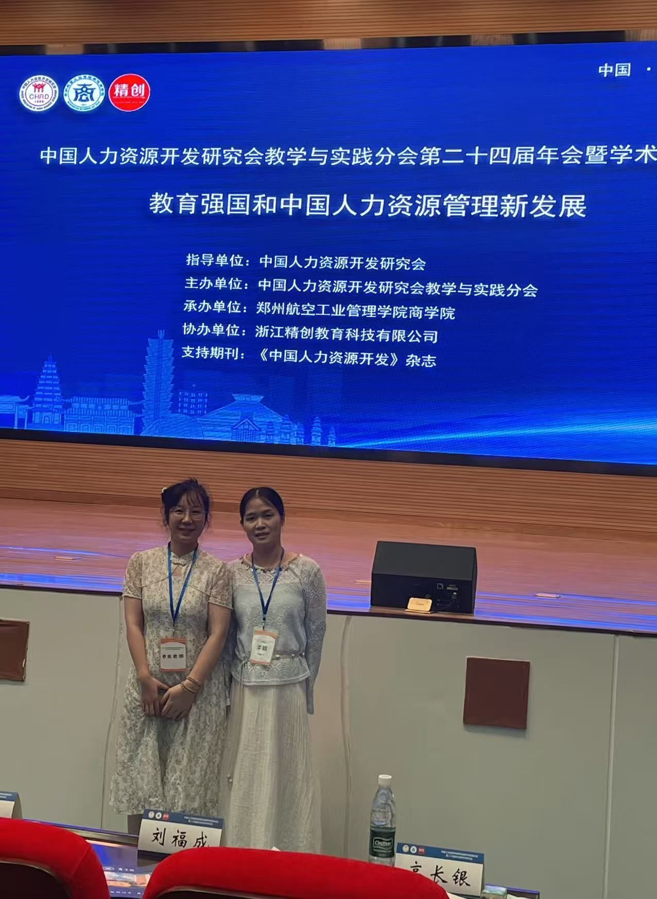 为积极响应学校“教育教学三提三创”主题年活动,持续提升教师教学能力,2025年7月26日至27日,重庆移通学院淬炼商学院马碧红和漆颖两位老师代表学校在郑州航空工业管理学院参加了中国人力资源开发研究会教学与实践分会第二十四届年会暨学术研讨会。此次会议以“教育强国和中国人力资源管理新发展”为主题,吸引了来自全国各地的专家学者和教育工作者,共同探讨人力资源管理领域的最新发展和未来趋势。