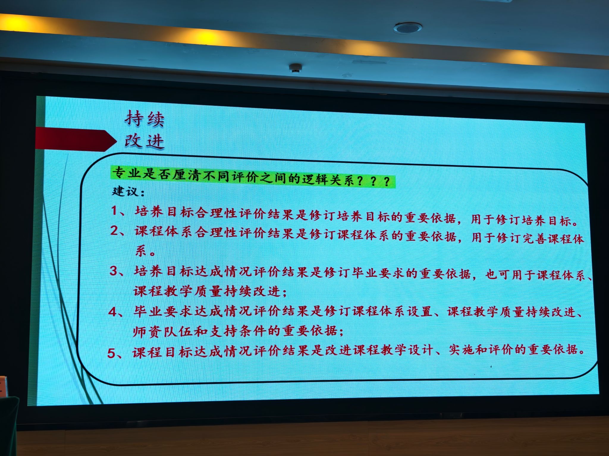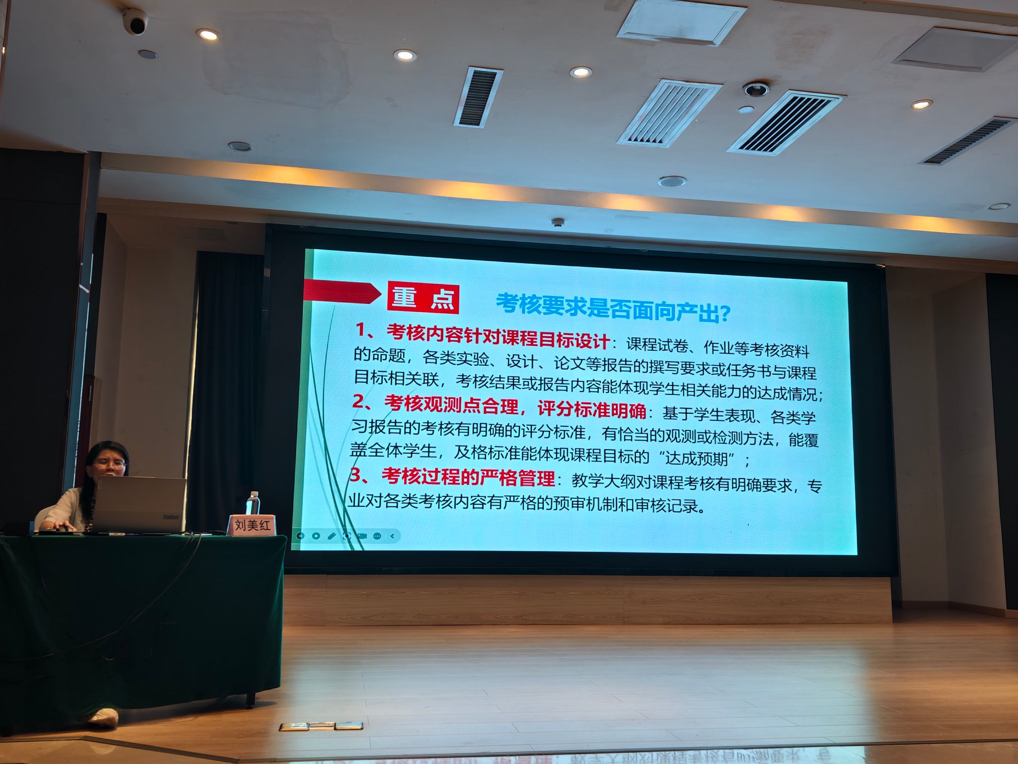 随后,刘教授结合OBE理念下教学大纲制定与课程目标达成评价做了分享,着重从课程目标的制定与难点进行说明,让老师们充分理解如何建立课程目标与毕业要求内涵点之间的对应关系,如何建立课程目标与教学内容、教学方法和手段之间的对应关系,如何建立课程目标与考核方式之间的关系,并明确持续改进的必要性。
