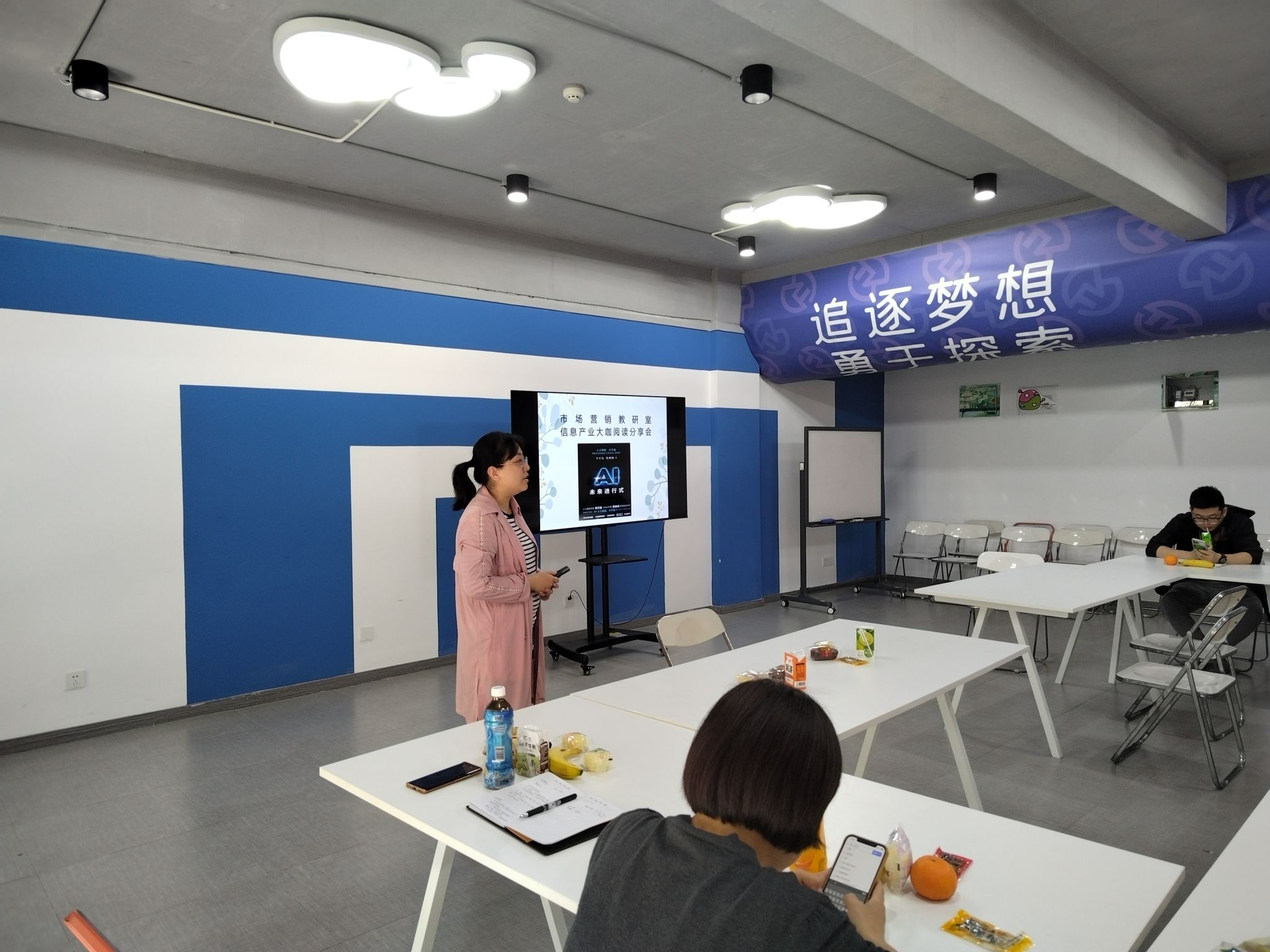 会议开始,林芳华老师先为大家介绍了这本书的两位作者和主要内容。《AI 未来进行时》这本书是由李开复和陈楸帆合著的关于人工智能未来发展的书籍。在这本书中,两位作者凭借其深厚的专业背景和对科技趋势的敏锐洞察力,为我们描绘了一个即将到来的AI时代。