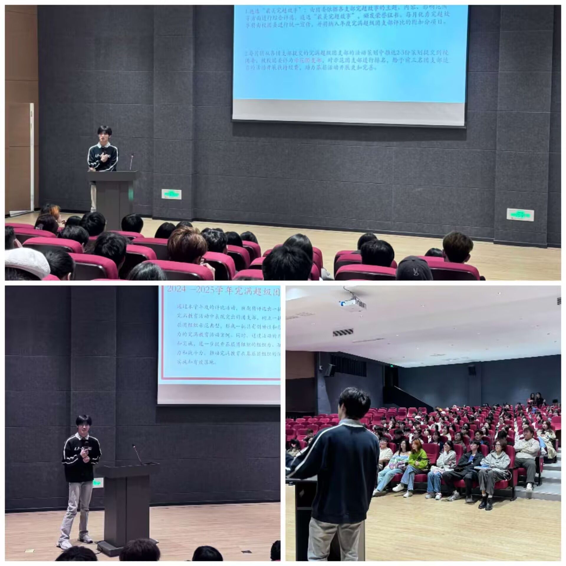 青衿之志,履践致远。在本期团干部培训会中,希望各位班团干部能够明白完超活动举办的内涵,能以更加饱满的热情、更加扎实的行动,去探索独具各班级特色的完超活动!