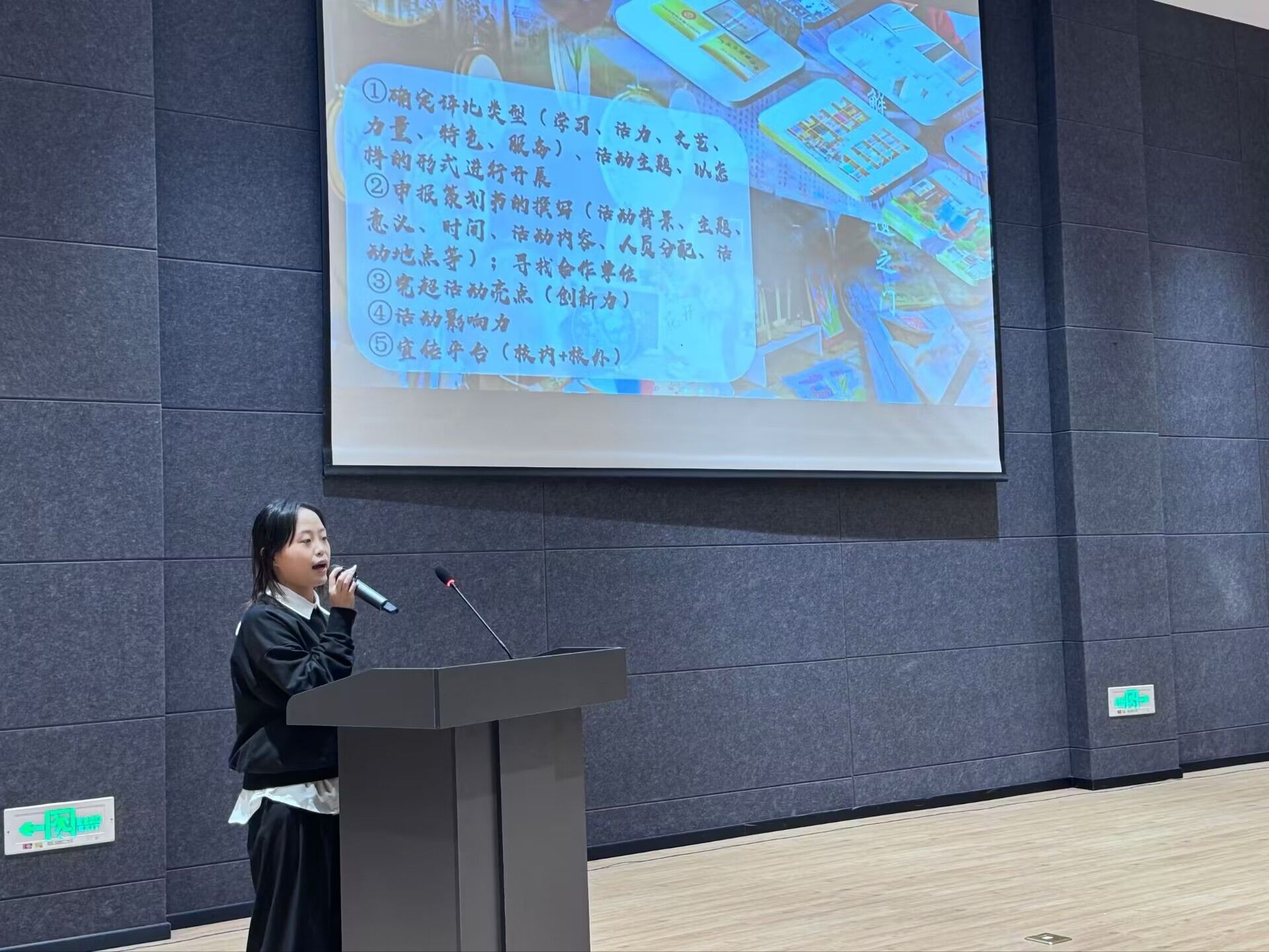 乘风破浪、带着完满精神,抵达成功彼岸。本次团干部培训会还邀请到了获得2023年度完满超级团支部的团支部书记陈颖学姐,陈颖学姐掷地有声地讲述了非遗文化完超活动的每一个细节:从最初的创意萌芽到活动的实施、深入插丝珐琅制作到邀请非遗传承人亲临指导;陈颖学姐讲述了整个过程实施困难,但是陈颖学姐向各位在场的班团干部表示了在整个过程中,班级成员展现出来的班级凝聚力,是在本次完超最大的收获,同时在完超的策划中各班团干部要敢想、敢为,才能抵达繁星。