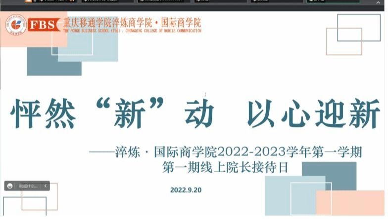 为了让大一新生们更加了解大学生活以及更好地制定好自身目标与学业生涯规划,淬炼 国际商学院就业助理团商科公关部于9月20日下午开展了2022-2023上学年第一期线上院长系列活动。本期活动邀请到的嘉宾有淬炼 国际商学院曾璐副院长、陈晓曼副院长、李义红老师、谭红英老师、何雨思老师、杨子莹老师以及大一的班委们。活动中同学们纷纷提出自己的困惑并与老师积极探讨,线上讨论区一片火热。
