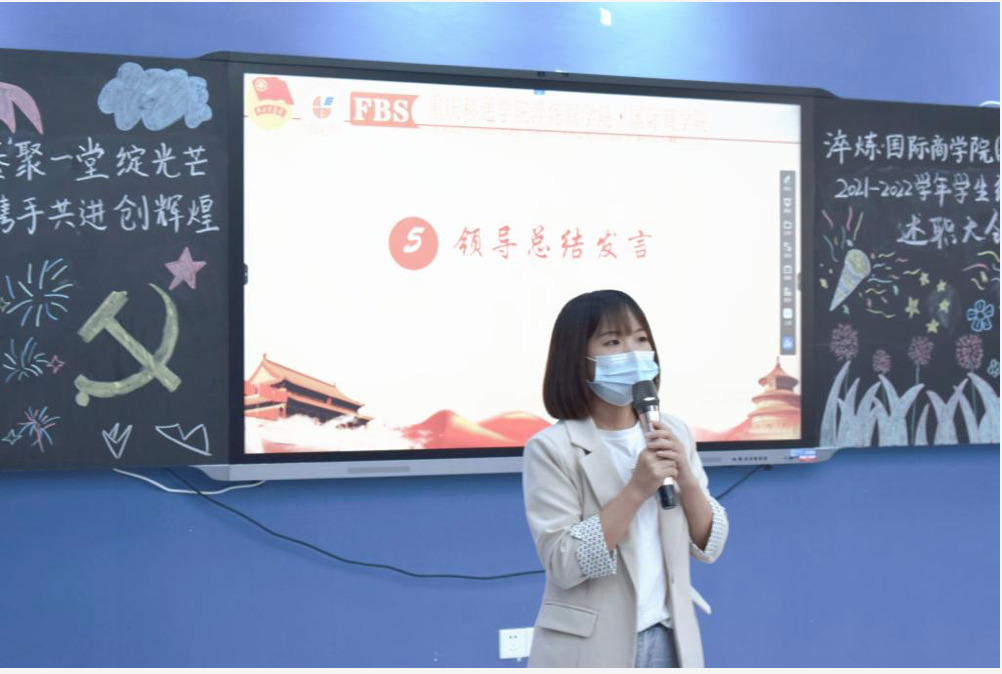 光阴荏苒,时光飞逝,转眼间,辛勤忙碌的学生组织工作即将落下帷幕。为进一步做好学年工作总结和工作规划,增强干事们的责任意识和创新意识,淬炼·国际商学院(綦江校区)于6月1日在QH7777智慧教室开展了以“‘綦’聚一堂绽光芒•携手共进创辉煌”为主题的2021-2022学年学生组织述职大会。出席本次大会的嘉宾有淬炼·国际商学院(綦江校区)学工办主任尹金维老师以及各板块指导老师肖琳老师、王凤老师、苟桃吉老师和成真老师。为积极响应疫情防控要求,本次大会采用“线上+线下”、“主会场+分会场”的形式同步开展,旨在确保每一位干事都能有参与感,回首辛勤耕耘汗水,见证硕果累累时刻。