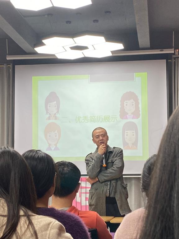 在分析过程中,邓老师结合专业前期的简历指导,在现场为大家展示优秀简历,向同学们分享了简历制作技巧,强调了专业能力的重要性。告诉同学们学会通过简历向人家展示特点和能力,以简历证明自己包装自己。