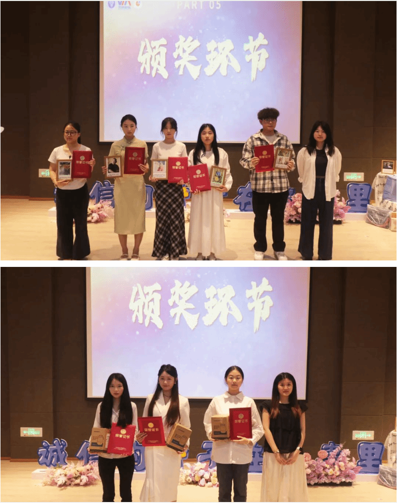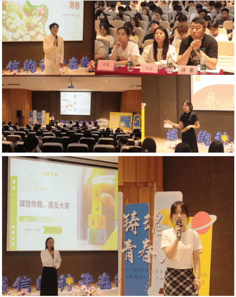 演讲比赛中,淬炼商学院王思琪勇夺桂冠,艺术传媒学院朱华丽、通信与信息工程学院娄家懿荣获二等奖,淬炼商学院古雯靖、外国语学院李海燕、智能工程学院徐上荣分别荣获三等奖。选手们立足校园生活,用真挚讲述展现诚信魅力。