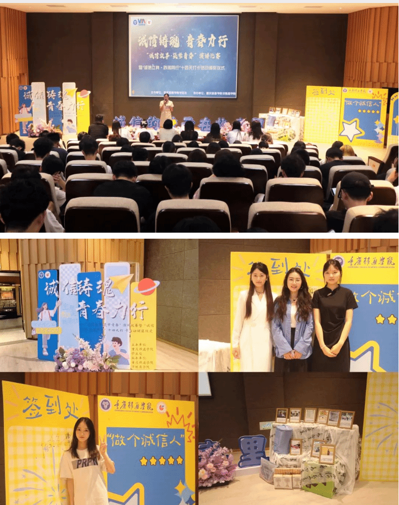 诚信,宛如中华民族精神长河中璀璨的明珠,历经岁月沉淀而愈发明亮。为进一步深化校园诚信教育,以文化人、以德育新。2025年5月28日,重庆移通学院学生处携手淬炼商学院于六度空间·无限多功能厅开展“诚信故事·筑梦青春”演讲比赛暨“诚信立身·践诺同行”十四天打卡活动颁奖仪式,本次活动巧妙融合“十四天打卡计划”与“诚信故事演讲比赛”创新性双轨模式,以青年之声传递诚信价值,深化校园诚信文化建设。
