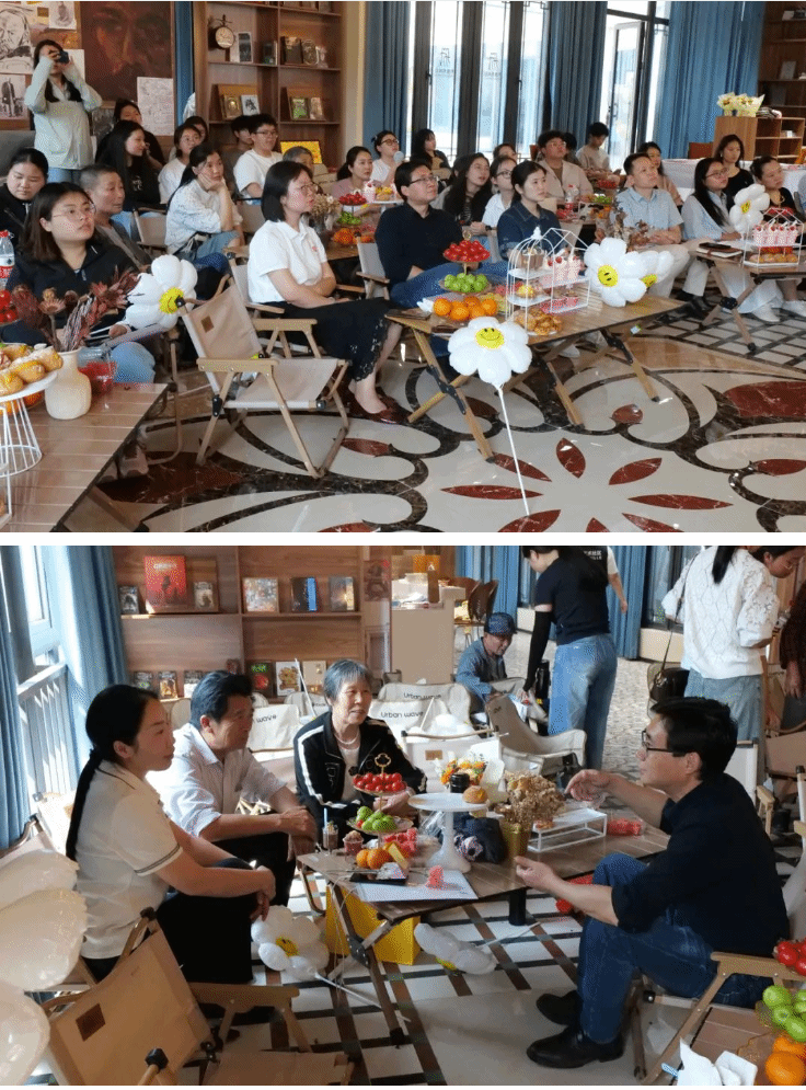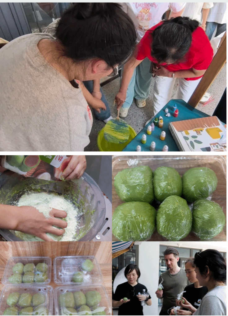 接着,在学院老师的带领下,家长和学生移步天空书院5楼平台,家长和学生可以一起体验非遗漆扇、竹编风铃、DIY相框、青团制作四个活动。非遗漆伞绘制处,亲子执画笔,花鸟跃伞面,文化传承与亲情在色彩间交融。竹编风铃摊位前,竹条穿梭,铃铛轻系,默契随着清脆铃音流淌。DIY相框摊位前,照片入框,彩珠干花点缀,成长记忆与家校守护定格。青团制作区,揉团馅,春味飘香,民俗传承与共育希望在软糯间升华 ,每一帧画面都是家校携手护航成长的温暖印记。通过这些活动,进一步拉近亲子关系,也让家长感受到完满教育的氛围和意义。