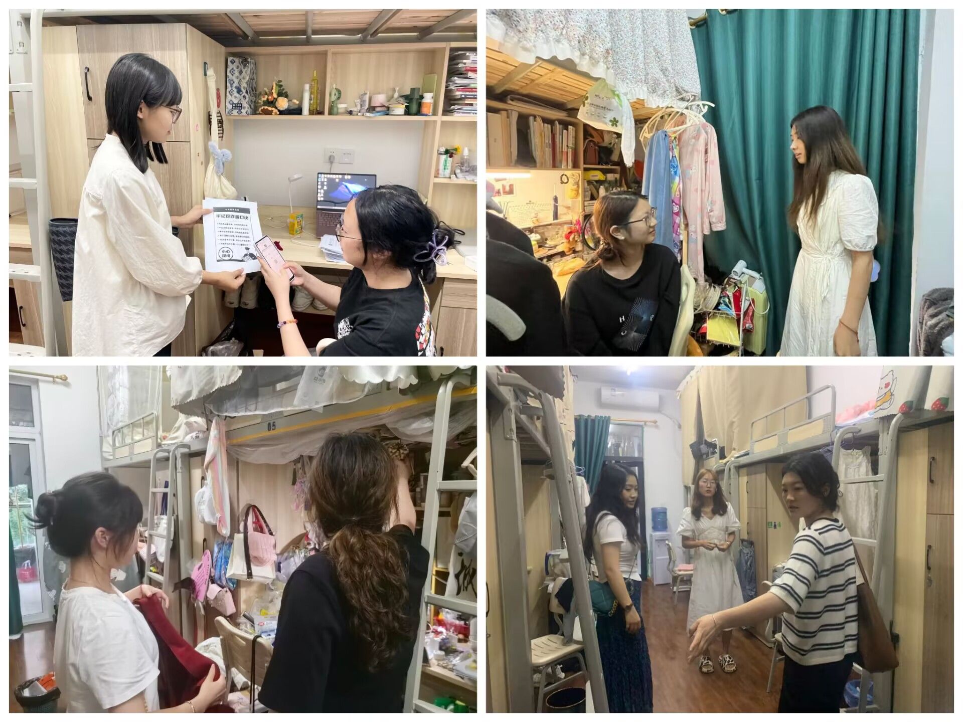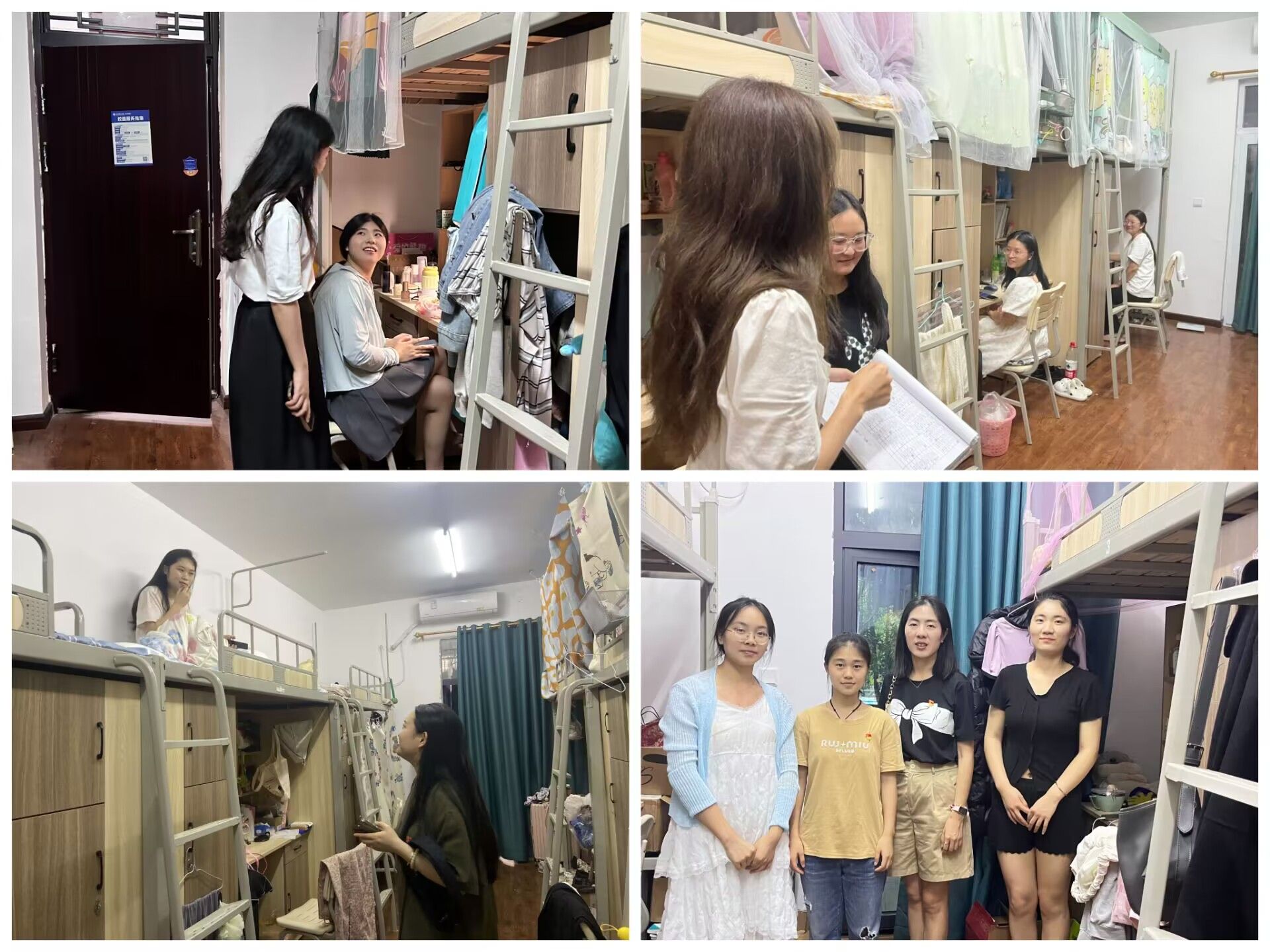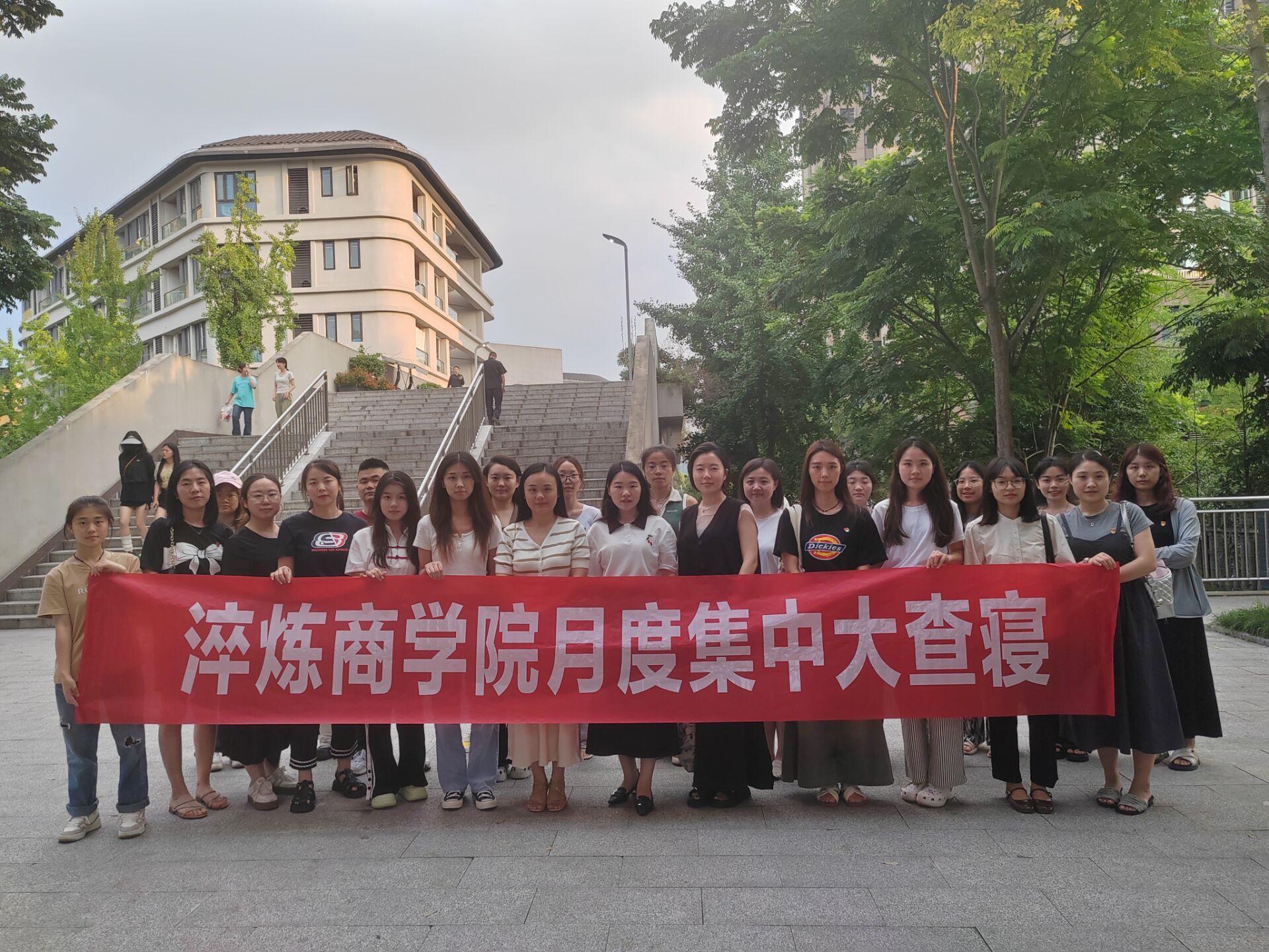 六月似翩跹的诗词,氤氲诗意。为了解学生寝室卫生情况、提高学生宿舍用电安全意识、进一步增强同学们的安全防范意识、深入了解就业规划情况并督促同学们做好考试复习并诚信应考,淬炼商学院学生组织于2024年6月17日晚上18:00在合川校区开展“心系学生,温暖巡寝”六月月度集中大查寝活动。本次大查寝活动邀请到刘薇唯院长以及全体辅导员老师们带领学生干部展开了全覆盖式查寝活动。