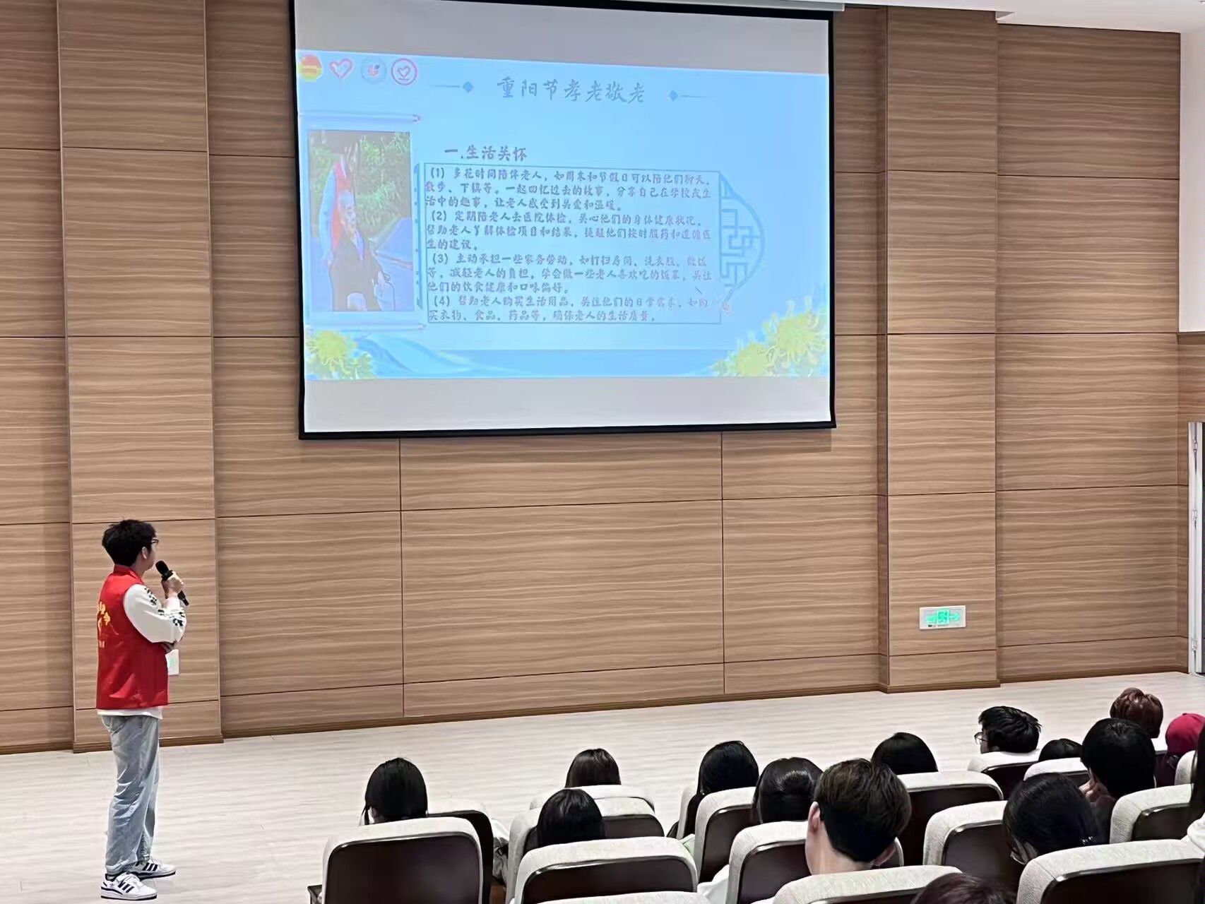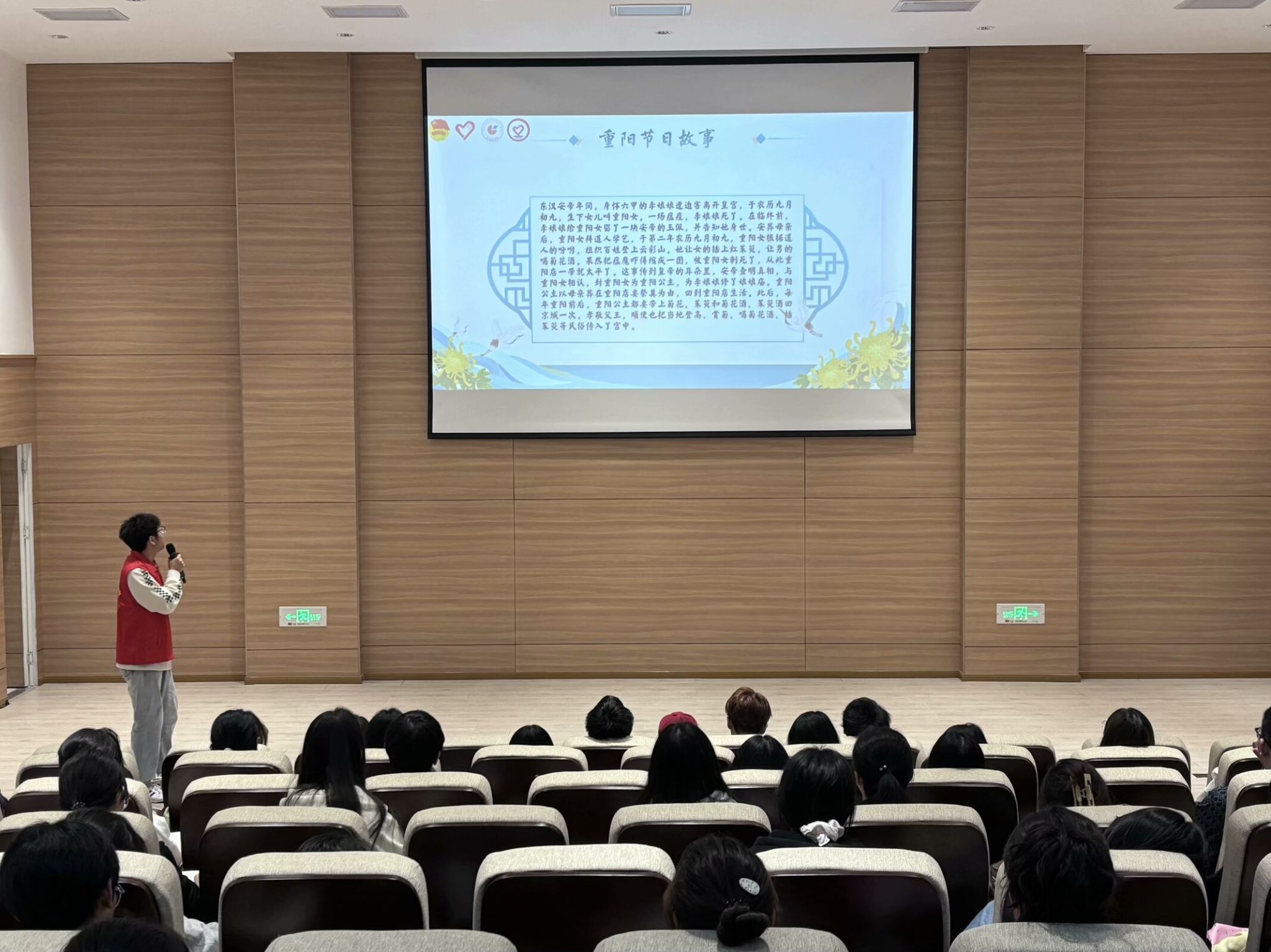 “独在异乡为异客,每逢佳节倍思亲。”主讲人生动形象的讲述了重阳之日,登高望远、赏菊饮酒、佩茱萸、吃重阳糕等传统习俗,不仅是对自然美景的欣赏,更是对家人思念之情的寄托。这些习俗历经千年,如同一幅幅生动的画卷,展现了中华民族深厚的文化底蕴和对美好生活的向往。此时,班团负责人们皆表示,中国传统文化习俗博大精深,为此志愿服务阵地将深化传统文化的内核,为志愿服务添砖加瓦。