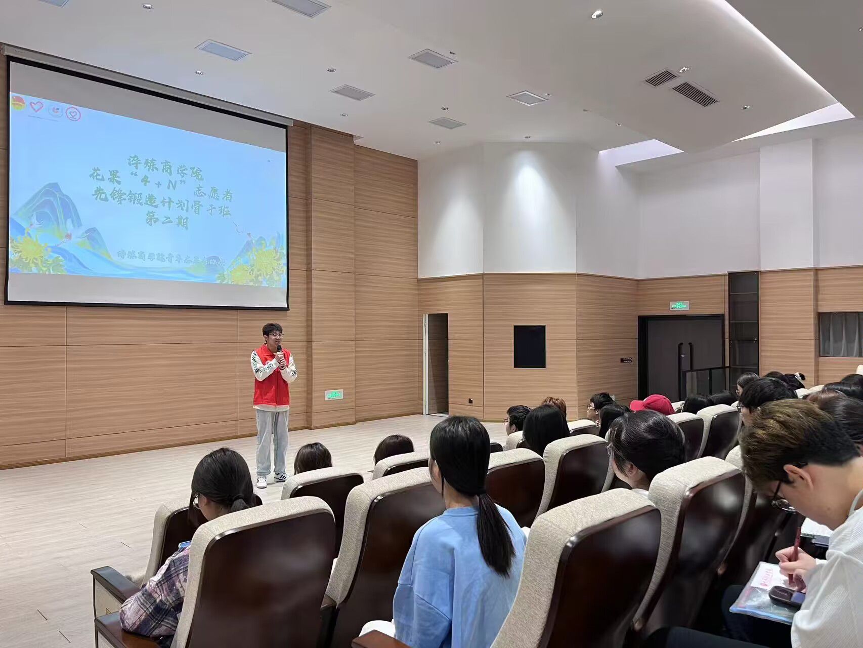 为了加强志愿者们对传统文化的认识和传承,推动志愿服务的多元化,以传统文化为内核提供更优质的志愿服务活动,淬炼商学院青年志愿者协会于2024年10月12日在六度空间创梦空间开展了“花果4+N”志愿先锋锻造计划骨干班第二期培训。本次活动由淬炼商学院“花果4+N”志愿先锋锻造计划志愿服务专项支队支队长曾睿,为培训人员科普九九重阳节,传递如何践行爱老敬老的传统美德,保证敬老爱老志愿服务活动切实开展。