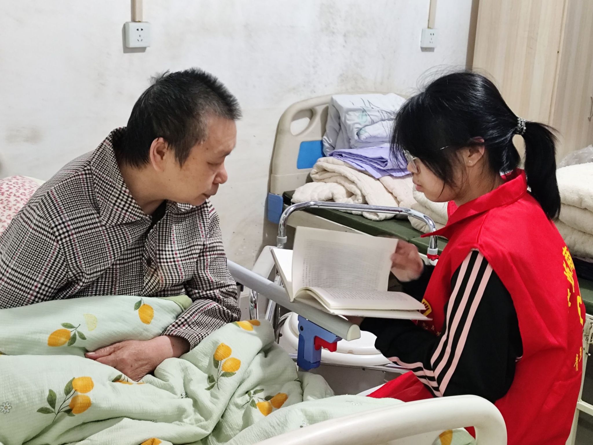 活动伊始,志愿者们引领老人们一同进行阅读活动。阅读不仅能丰富老人们的精神文化生活,还能让志愿者们更深入地了解老年人的阅读需求与喜好,更能帮助大家暂时忘却日常生活中的压力与烦恼。而且,阅读是文化传承的重要途径,通过阅读可以了解和继承人类文明的丰硕成果。于是,志愿者们与老人们一起阅读书籍,分享阅读的愉悦。志愿者们精心挑选了一些适合老年人阅读的书籍,如历史故事、文学经典等,与老人们一起探讨书中的内容,交流心得体会。在阅读中,志愿者们与和蔼可亲的老人们共同度过了一段温馨且富有意义的时光。