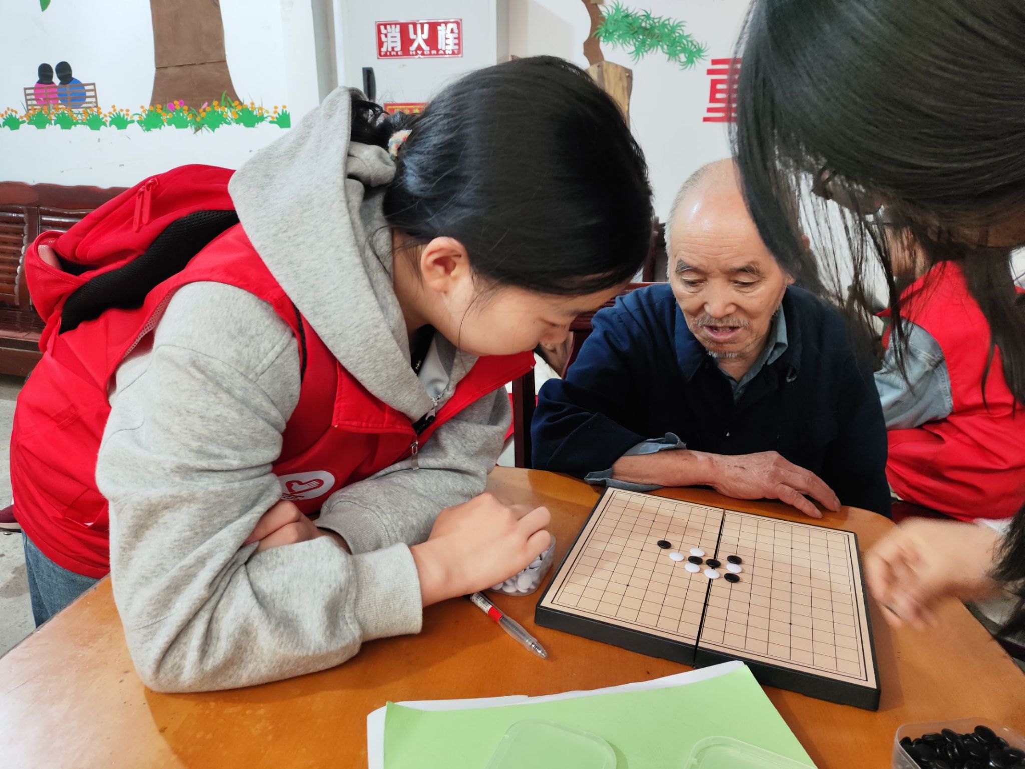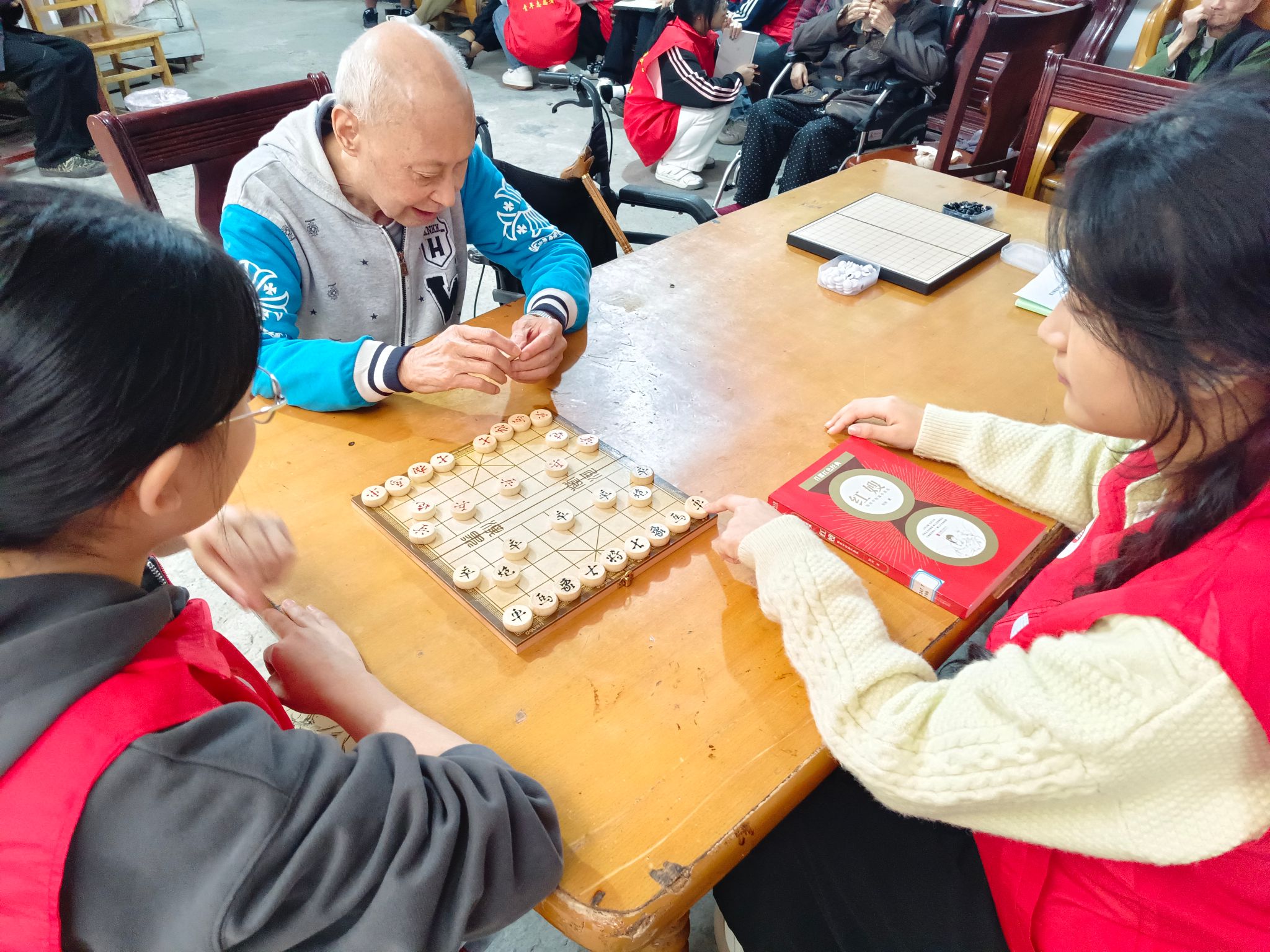 在活动中,志愿者们与老人们一起下五子棋和象棋,展开了一场场智慧的较量。在象棋棋盘上,志愿者们仿佛穿越了时空,体验了古代战场上的谋略与智慧。在五子棋棋盘上,志愿者们和老人们分不出高低,脸上洋溢着笑容。志愿者们以谦虚学习的态度,与老人们共同享受对弈的乐趣。同时,志愿者们也注意到有一些老人对棋类游戏显得有些陌生。于是,志愿者们耐心地向这些老人解释游戏规则,从最基本的走法开始,一步步引导老人们进入棋艺的世界。这一环节不仅锻炼了老人们的思维能力,也让志愿者们在交流中增长了见识。