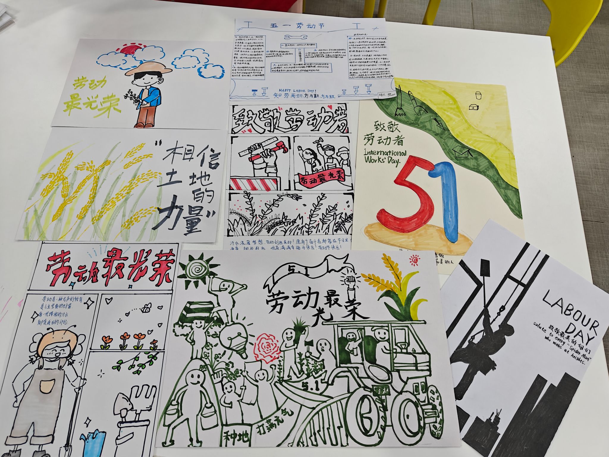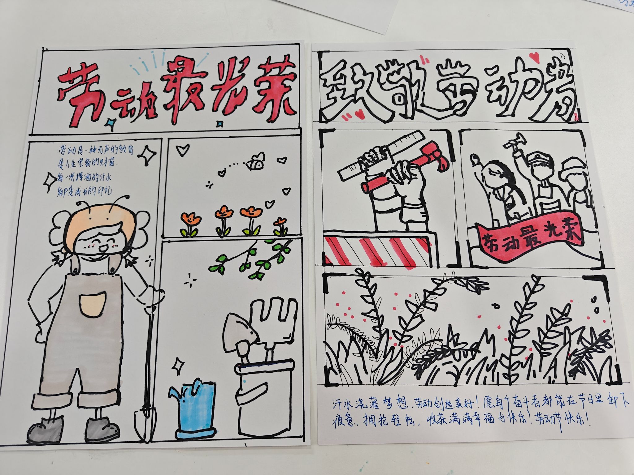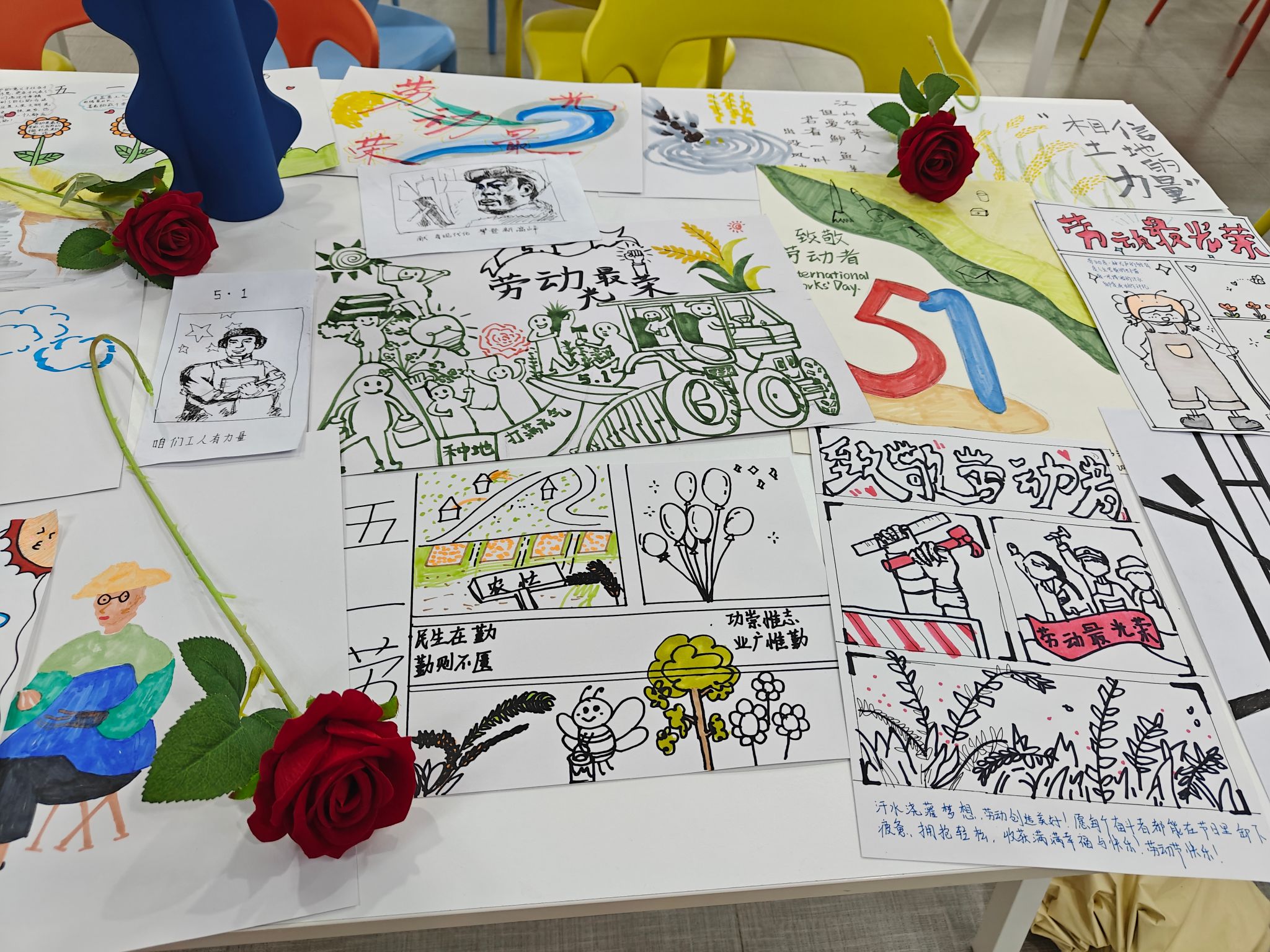 同学们手中的画笔仿佛被赋予了生命,在洁白的画纸上尽情舞动。每一笔、每一划都倾注着同学们对劳动的理解与感悟,以艺术的形式向广大劳动人民致以最崇高的敬意和最美好的祝福。