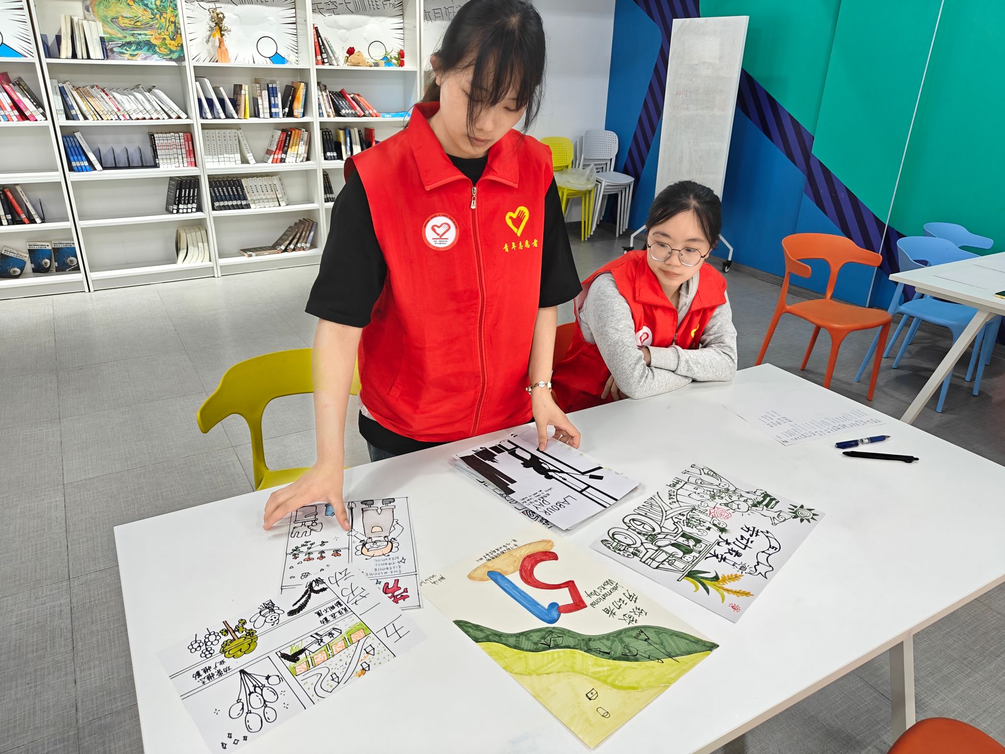 活动接近尾声时,志愿者们并没有丝毫懈怠,认真地对较为优秀的绘画作品进行了拍照记录,希望将这些美好的瞬间和同学们的心意永远留存。并且仔细地整理了活动现场,将画笔、颜料等物品归位,让现场恢复了整洁。