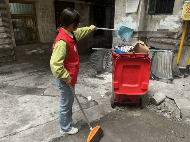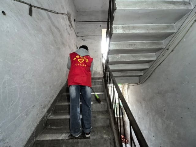 社区负责人对活动内容进行了简单的概述之后,志愿者们手持扫把、簸箕和垃圾袋等工具,兵分几路分散到社区的街道。活动中,志愿者们积极主动地拾捡⽩⾊垃圾,清理楼道“⽜⽪癣”,清理积存垃圾和乱堆放。为了彻底清除楼道间杂物,志愿者们先摸底调查,再上门对相关居民做了思想⼯作,对于不理解、不⽀持的居民,志愿者就多次上门,最终说动居民们主动配合,彻底清除了居民楼旁边和楼道内的杂物。清洁过程中,志愿者们相互协作,在大家的共同努力下,原本脏乱的角落变得干净整洁,社区环境逐渐焕然一新。