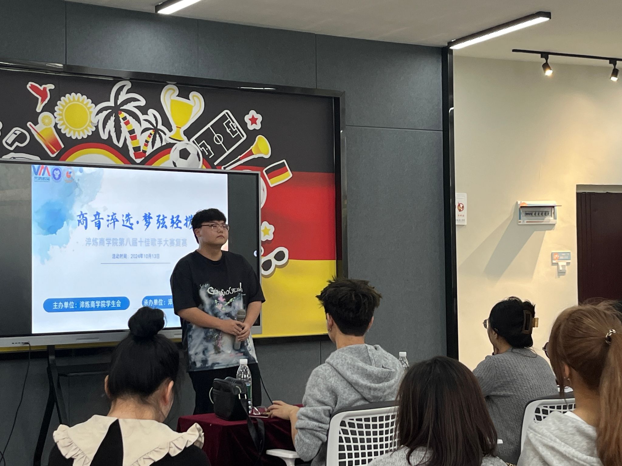音乐的力量,跨越界限,传递情感。淬炼商学院第八届十佳歌手复赛于10月13日下午14:00在南湖书院中德创意工坊隆重举行。20名经过初赛选拔脱颖而出的淬炼学子齐聚一堂,竞相绽放各自的音乐才华。他们的歌声,或如狂澜激荡,或似细水长流,宛如空中跳跃的精灵,编织出一幅幅动人心弦的音画。每一位参赛者都倾注了满腔热情与高超的艺术造诣,为在场的每一位观众奉上了一场震撼心灵的视听盛宴。复赛舞台上,选手们或变换表演风格,或尽情展现个人风采,以歌声讲述着生命的篇章,有的以雷霆万钧之势震撼四座,有的则以温柔细语触动人心弦。
