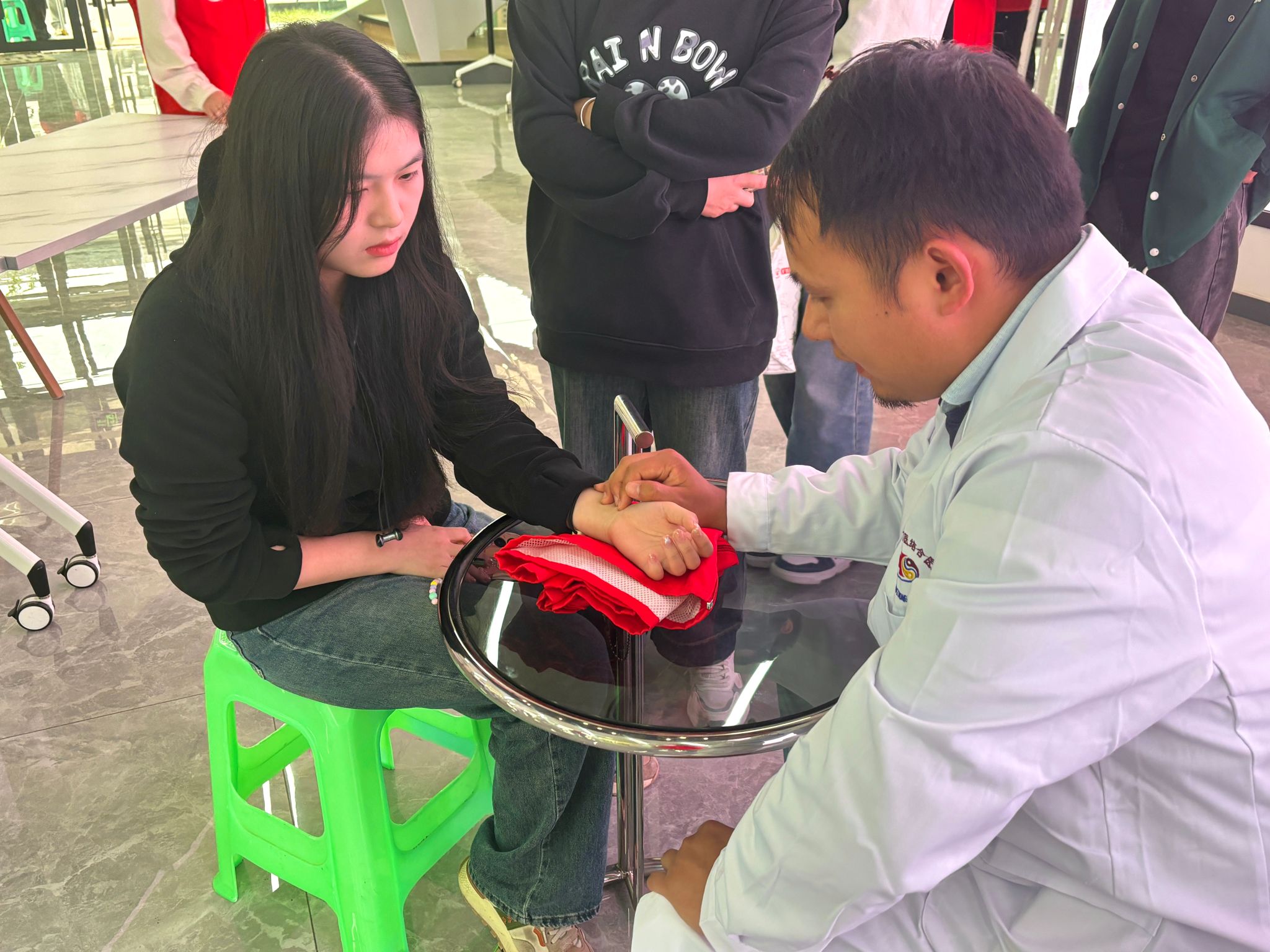 现场邀请了多名同学体验中医把脉问诊。医师仔细地为同学们把脉,询问身体状况,并给出了专业的建议。同学们纷纷表示,通过这次体验,对中医的神奇之处有了更直观的感受。