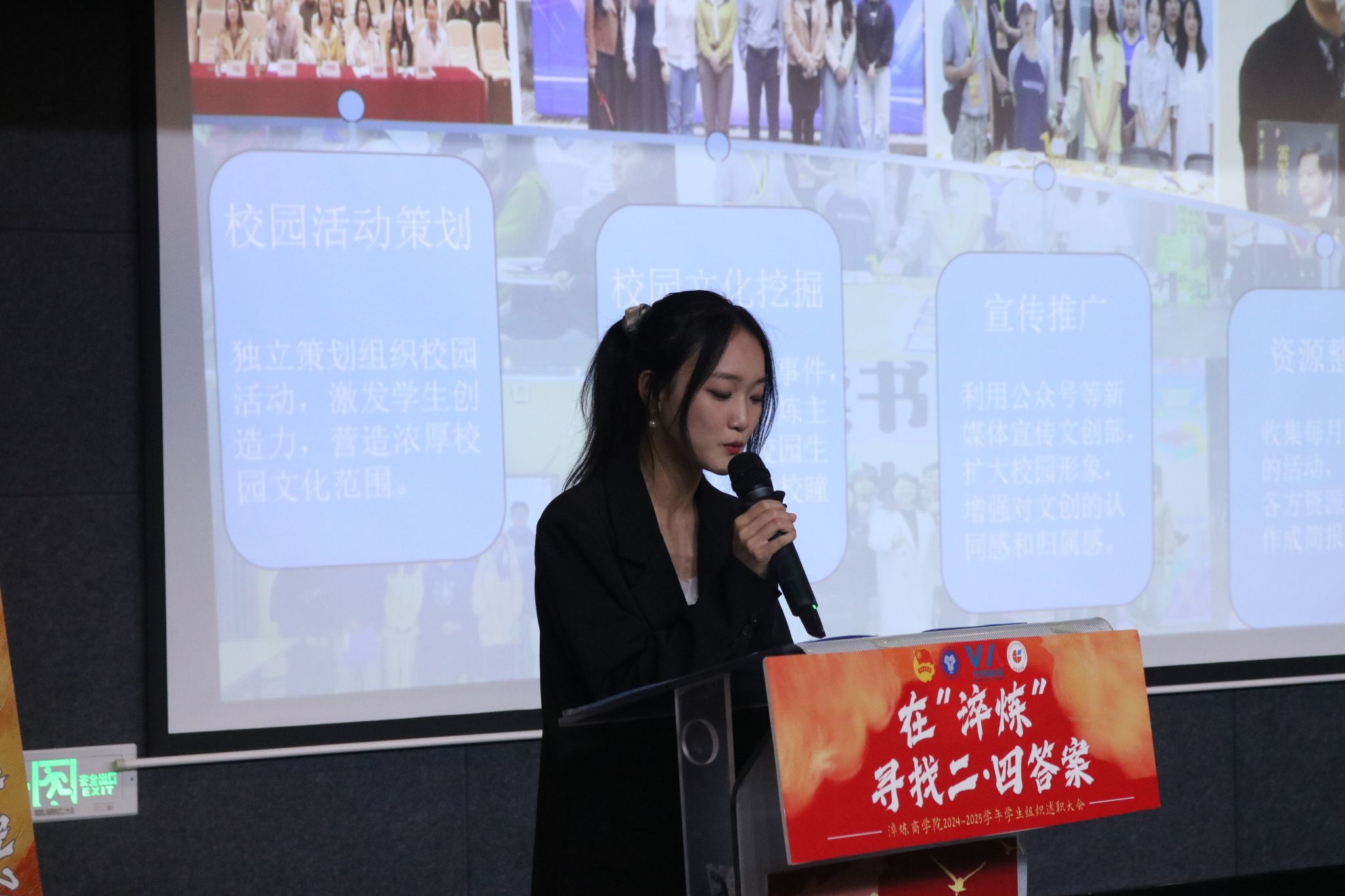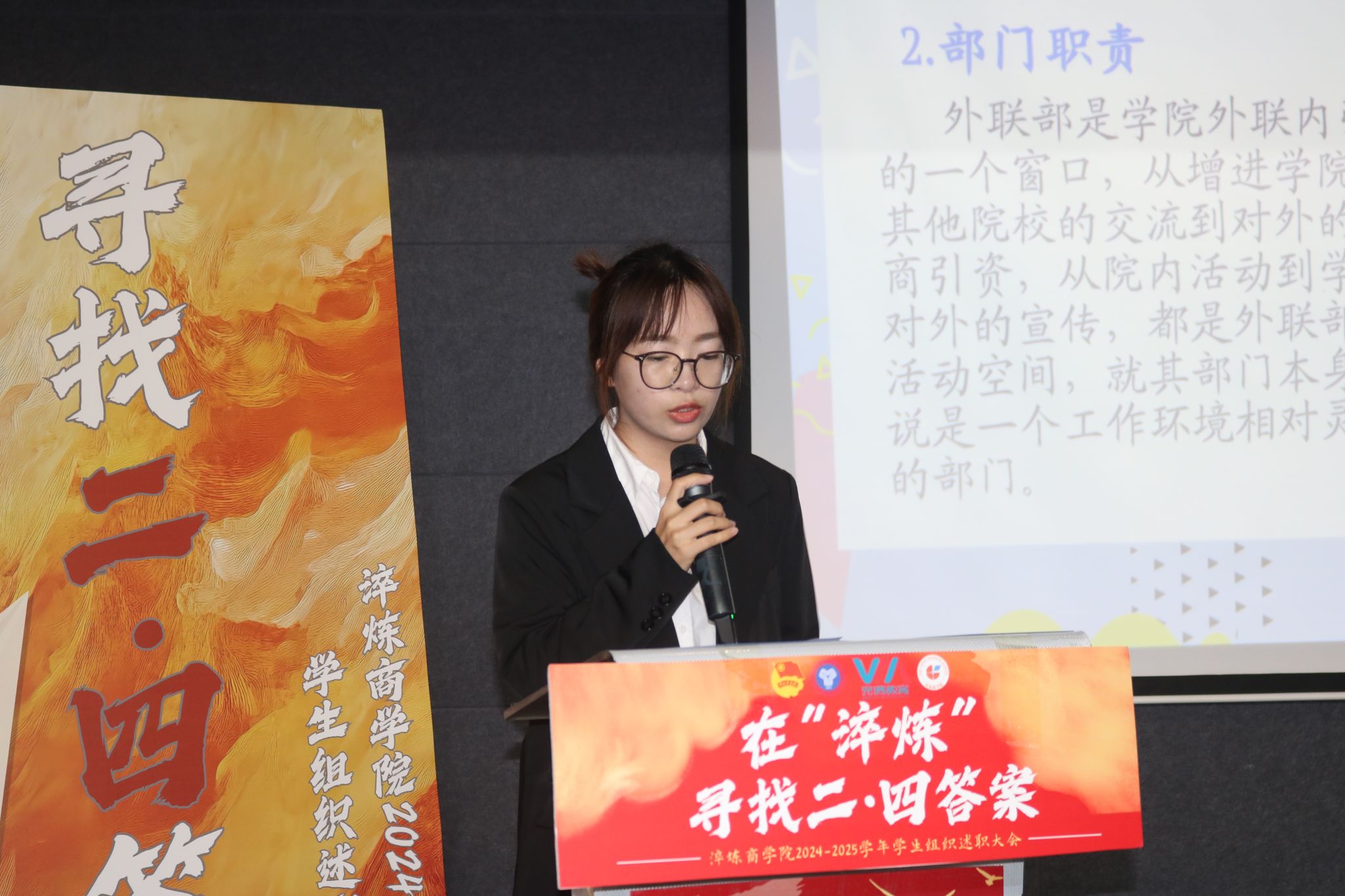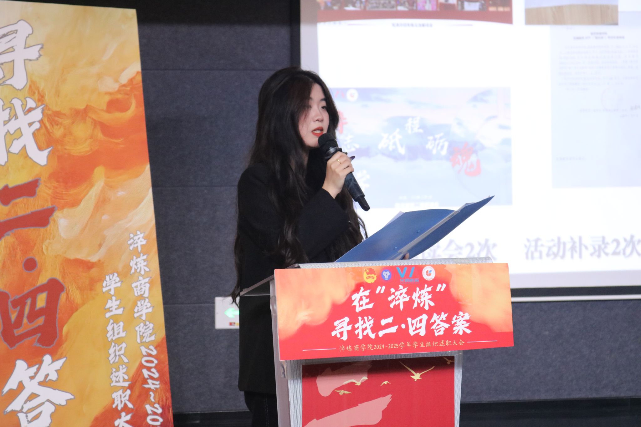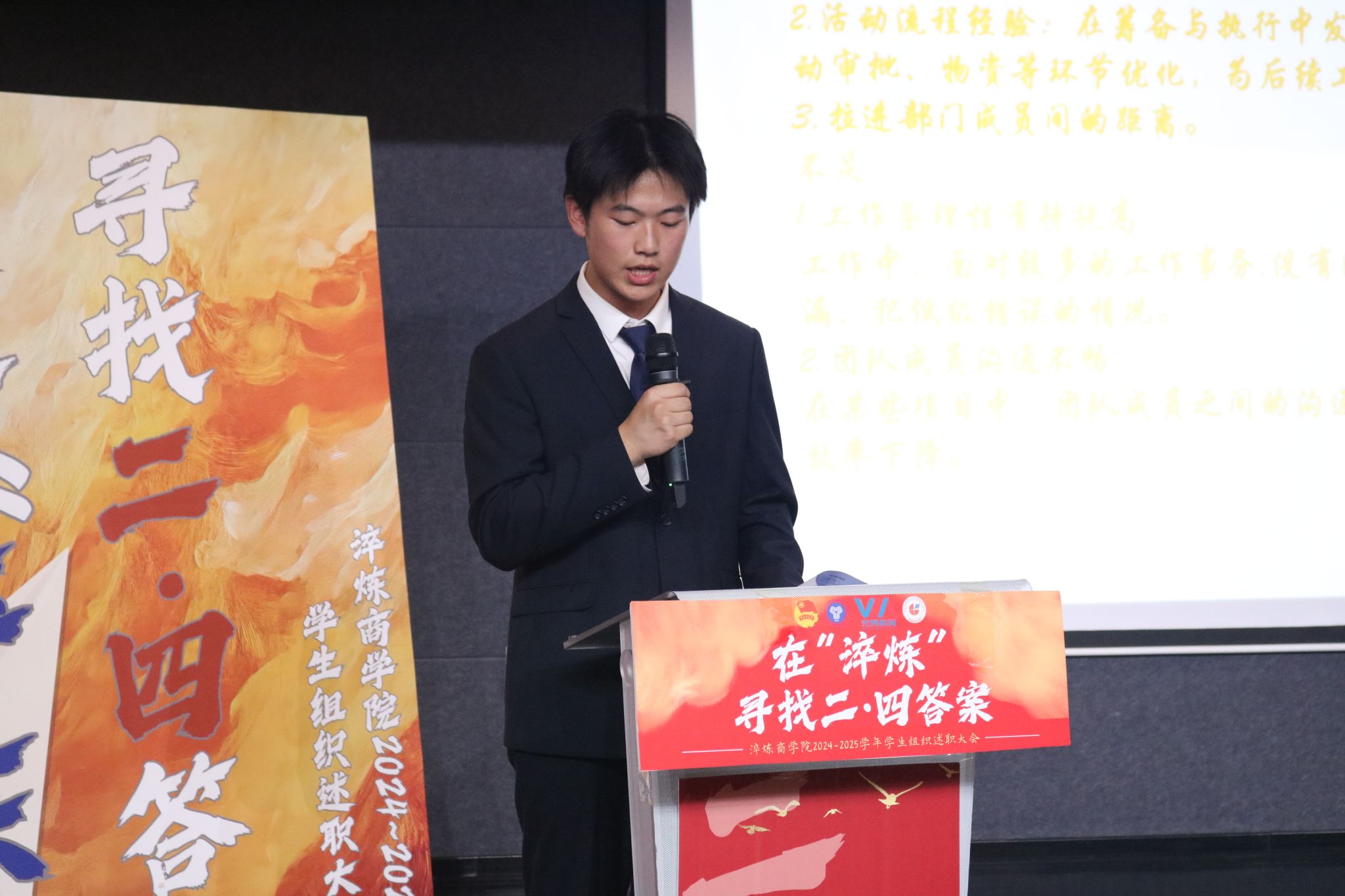 此次“在淬炼,寻二四答案”-2024 - 2025学年学生组织述职总结大会的成功举办,不仅为各部门提供了一个展示自我的平台,也进一步明确了学生组织未来的发展方向。相信在全体干部干事的共同努力下,淬炼商学院学生组织将不断创新发展,取得更加优异的成绩,为学院的发展和学生的成长书写更加辉煌的篇章。