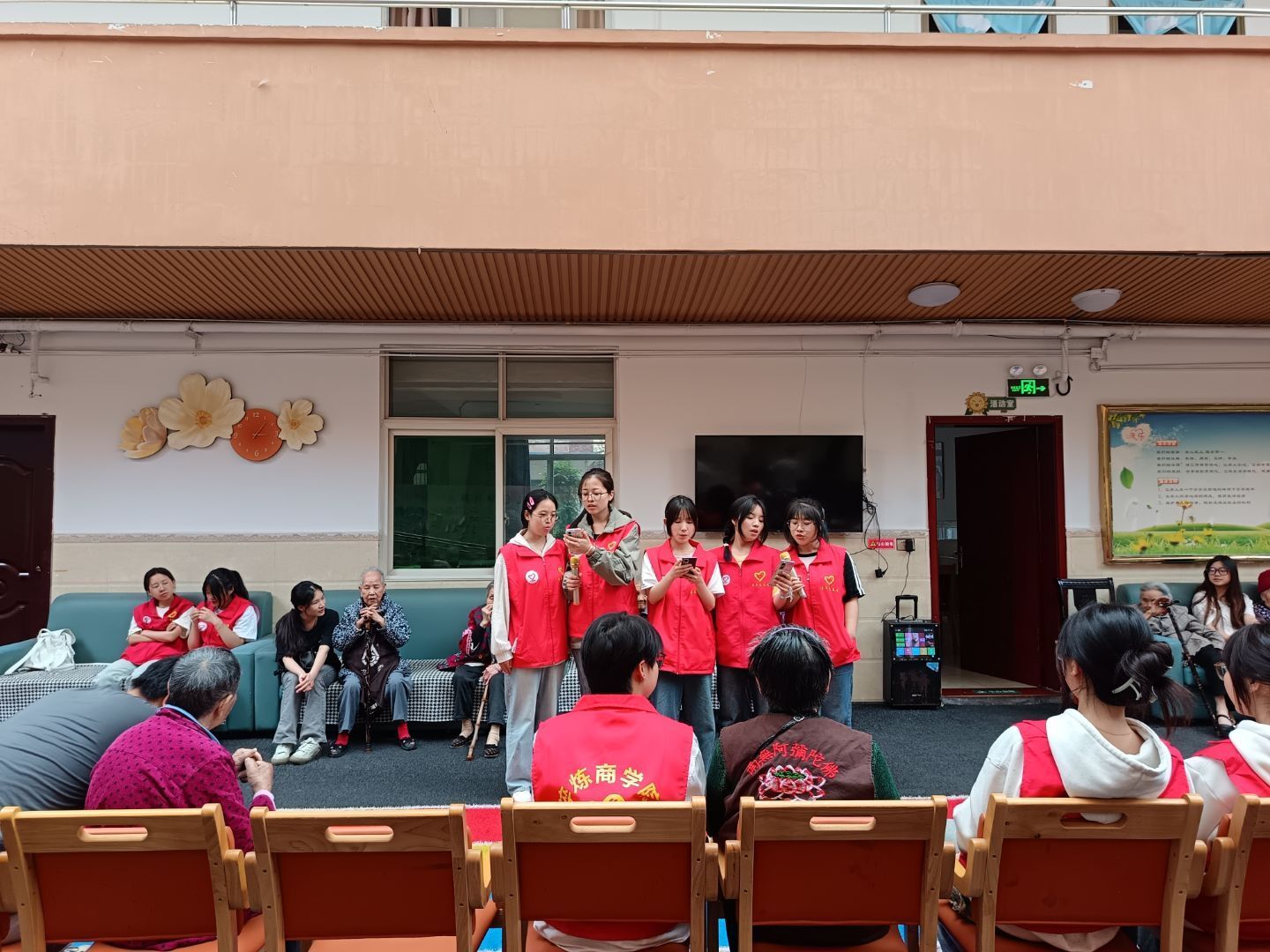 口腔检查结束后,“花儿系百老,小小志愿情”爱老敬老志愿服务专项支队的志愿者们精心准备的娱乐环节正式开始。首先是歌曲表演,志愿者们用悠扬的歌声演唱了《没有共产党就没有新祖国》《歌唱祖国》等经典老歌,熟悉的旋律瞬间勾起了老人们的回忆,不少老人跟着节奏轻轻哼唱,脸上洋溢着幸福的笑容。