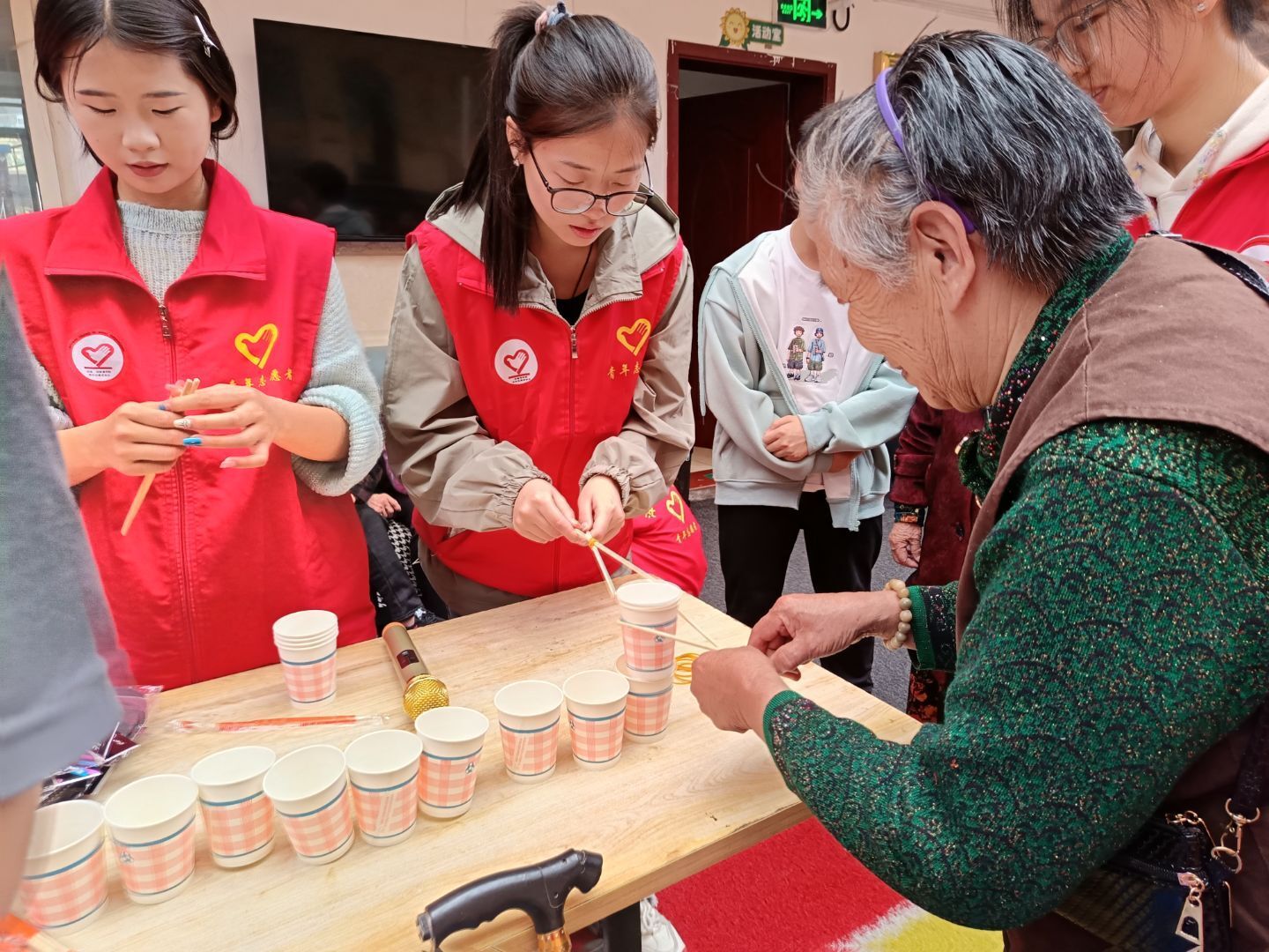 随后,夹纸杯和弹珠小游戏将活动氛围推向高潮。志愿者们向老人们详细介绍游戏规则后,老人们纷纷踊跃参与。在夹纸杯游戏中,老人们用筷子小心翼翼地夹起纸杯,努力将其运送到指定位置。尽管有些老人动作稍显迟缓,但他们全神贯注的模样令人动容。弹珠游戏同样趣味十足,老人们手拿小勺子,专注地将弹珠从一个碗舀到另一个碗中。现场不时传来阵阵欢笑声和加油声,志愿者们在一旁为老人们加油鼓劲,还贴心地搀扶行动不便的老人,确保他们的安全。为了让老人们更有参与感和成就感,志愿者们还为在游戏中表现出色的老人准备了精美的礼品,收到礼品的老人们喜笑颜开,拉着志愿者的手连声道谢。