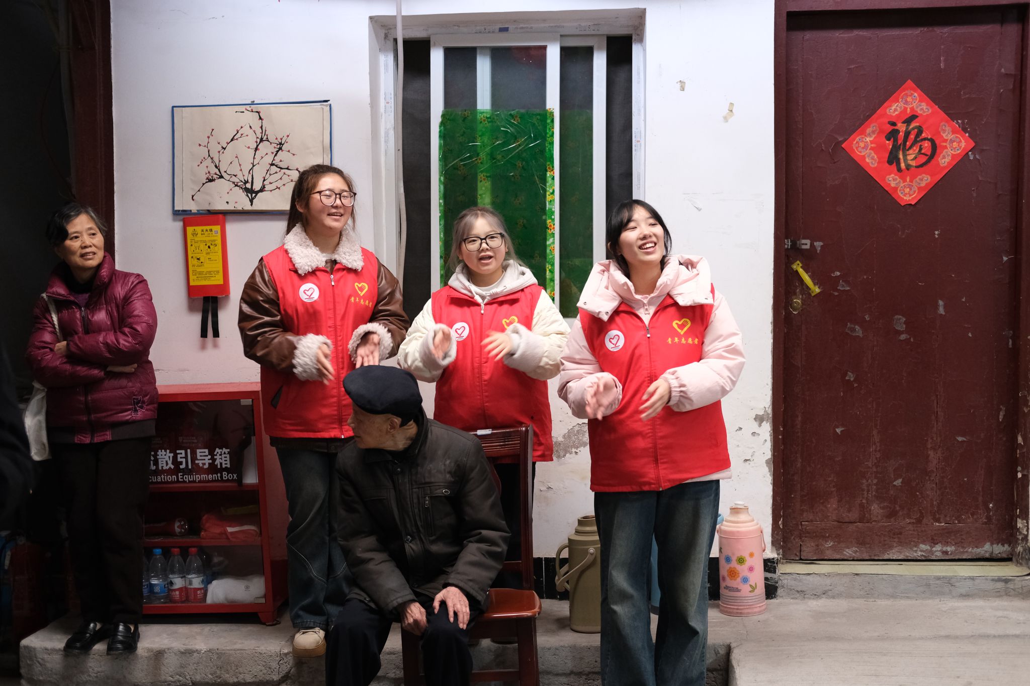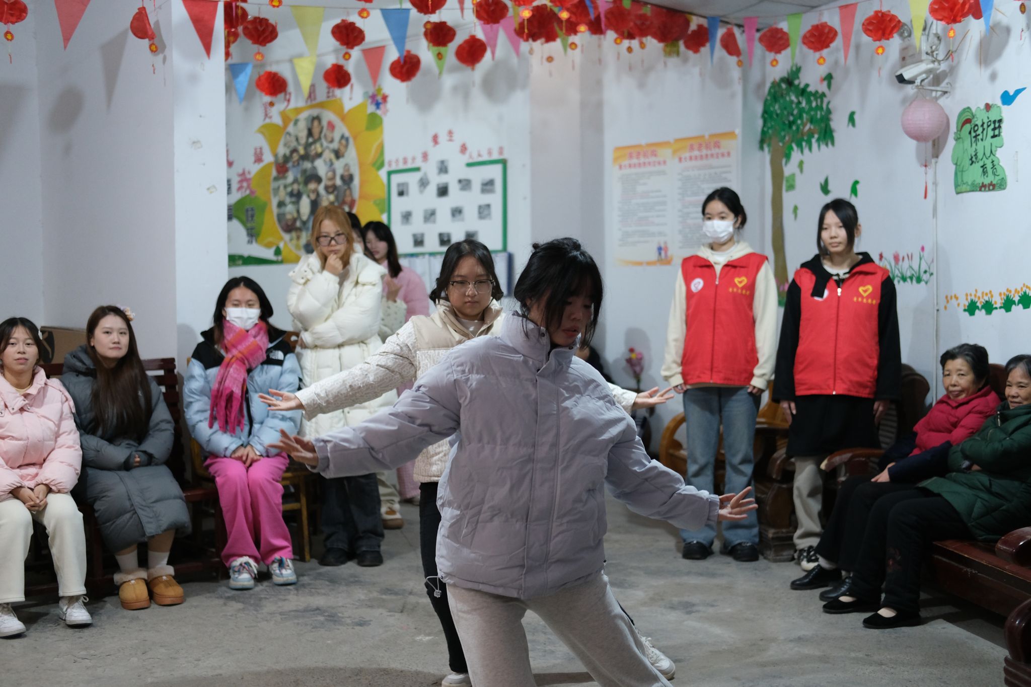为了给爷爷奶奶们带去更多的欢乐,重庆移通学院舞蹈协会的成员们精心准备了一场精彩绝伦的舞蹈表演,音乐声响起,舞者的每一个动作都充满了力量与柔美,每一个转身都如同行云流水般自然流畅,爷爷奶奶们的目光紧紧地跟随着舞者的身影,脸上洋溢着陶醉的神情,舞蹈结束,公寓里响起阵阵热烈的掌声。舞蹈表演完成,志愿者们争锋为老人们唱了起来。老歌红歌与现代流行音乐相互交织在一起,让老人们在回忆当年的同时又不断地接受着新歌曲,现场热热闹非凡。