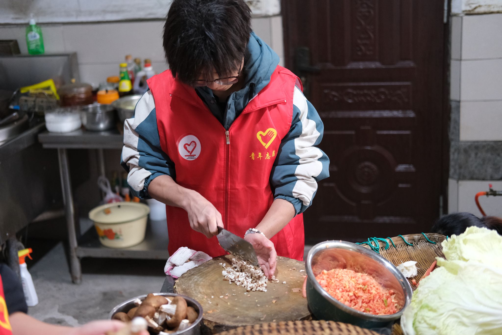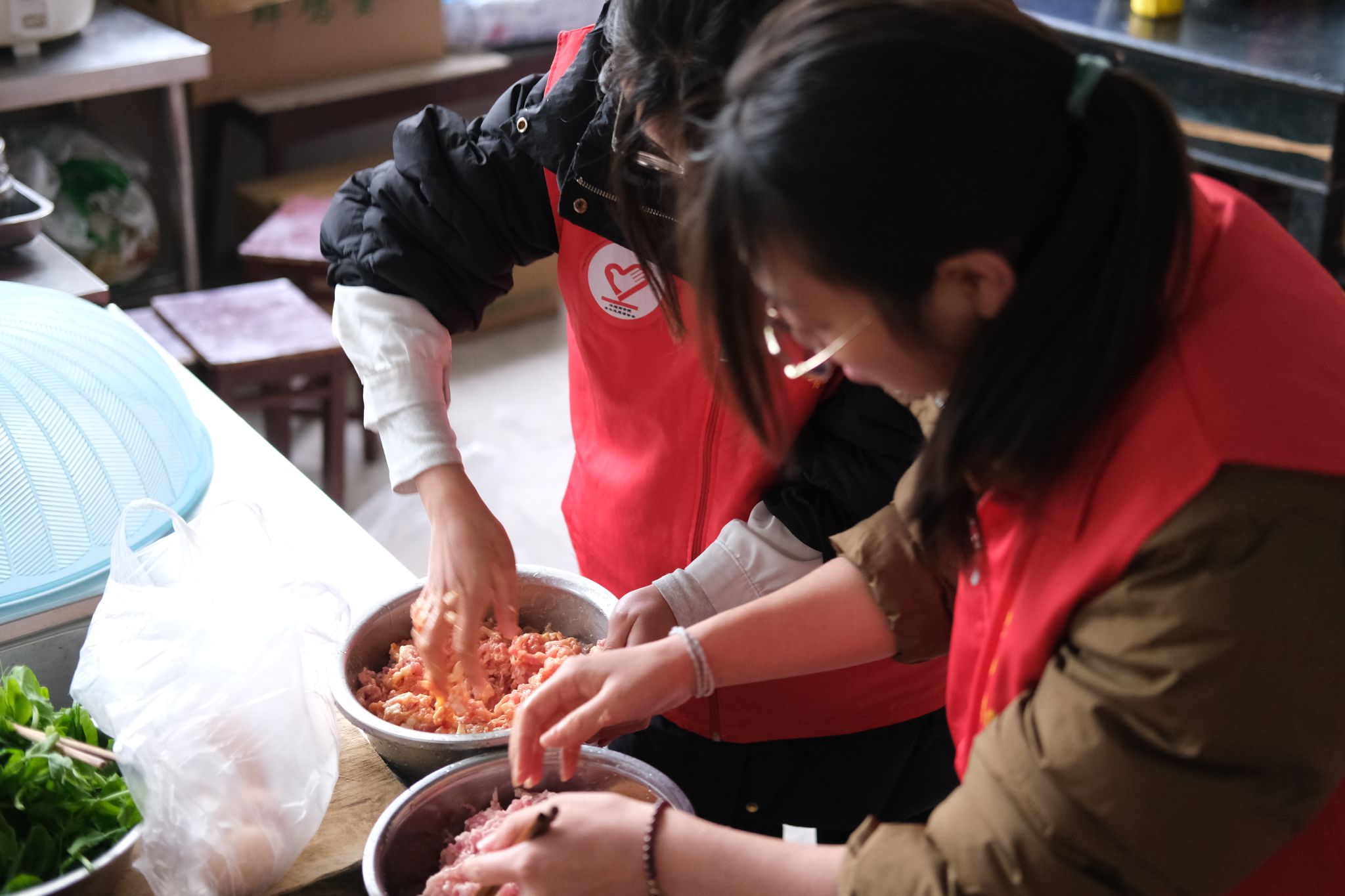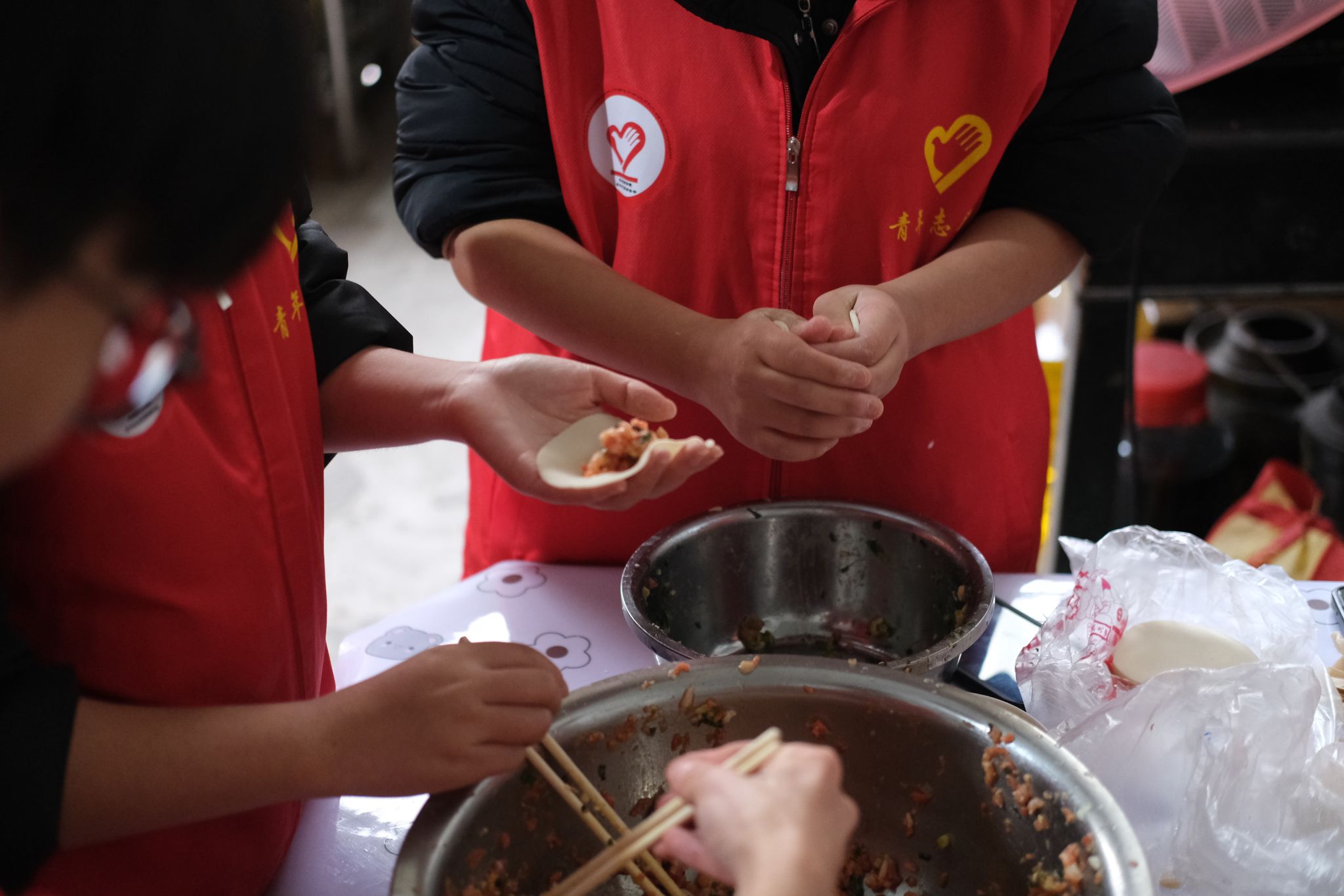 在老年公寓大厅,爷爷奶奶们饶有兴致地讲述着年轻时的故事,志愿者们听得入神,不时发出赞叹和欢笑。与此同时,老年公寓的厨房也热闹非凡。志愿者们在厨房熟练地洗着菜、剁着馅,志愿者们一边为之后的“大工程”做着准备工作,一边彼此交谈着最近的趣事,欢声笑语回荡在整个房间。准备工作完成后,志愿者们围聚在桌子旁,手法熟练的将一张张皮变成一个个饱满的饺子,因为准备的口味很多,工程量较大,志愿者们就分成了两队,包着包着就变成了包饺子大赛,都在暗暗较劲。在包饺子的过程中,爷爷奶奶们时不时来到厨房看志愿者们包饺子,看到有不会包的志愿者还会在旁边指导指导,志愿者们一边包着饺子,一边和爷爷奶奶们亲切的交谈着。没用多久,一盘盘形状各异的饺子摆满桌面,当锅中的水沸腾起来,工作人员将饺子放进锅中,饺子在水中沸腾着,香气四溢,弥漫在整个老年公寓。大家一起品尝着自己亲手包的饺子,爷爷奶奶们脸上洋溢着满足的笑容,对志愿者们包的饺子赞不绝口。