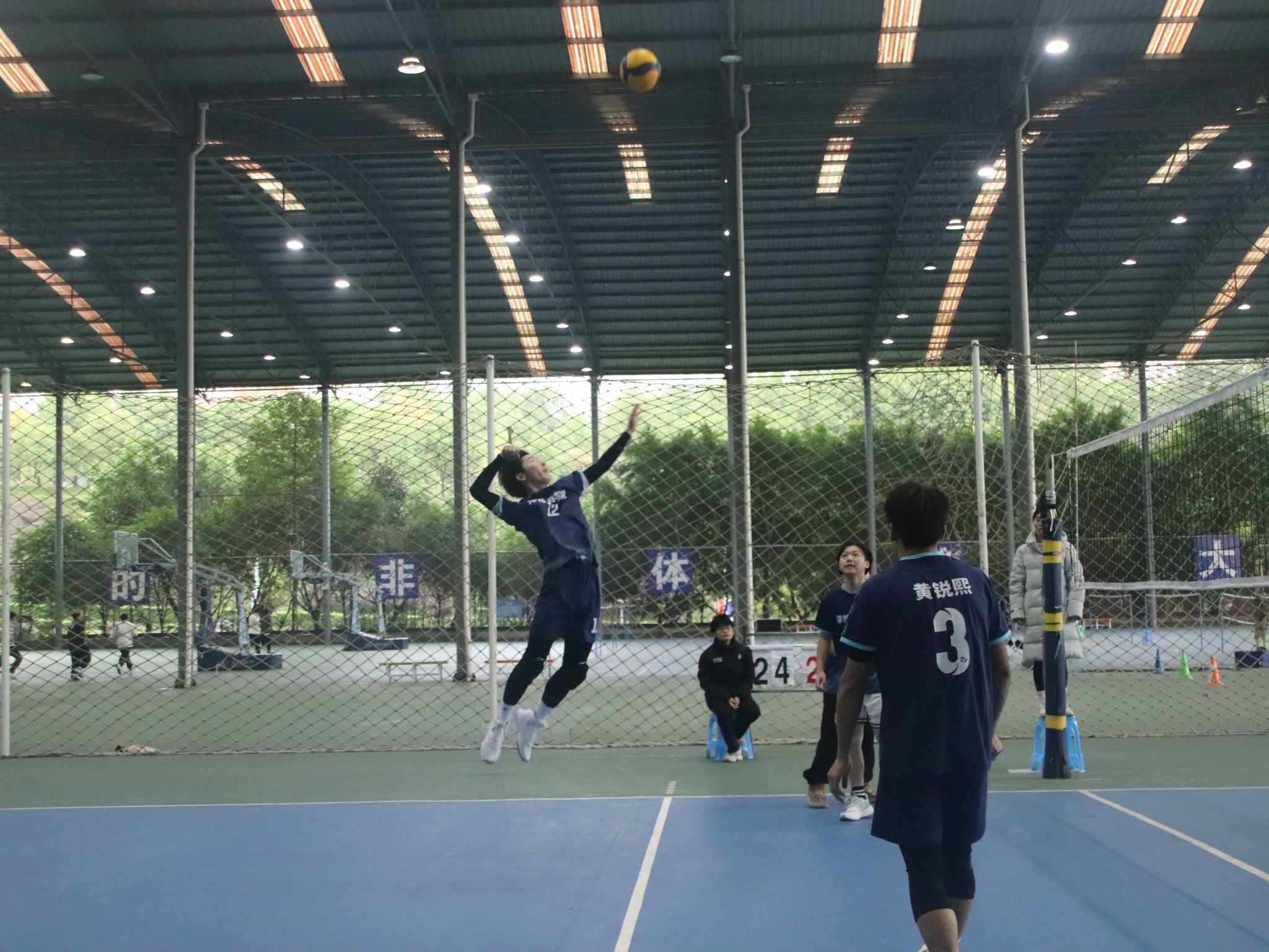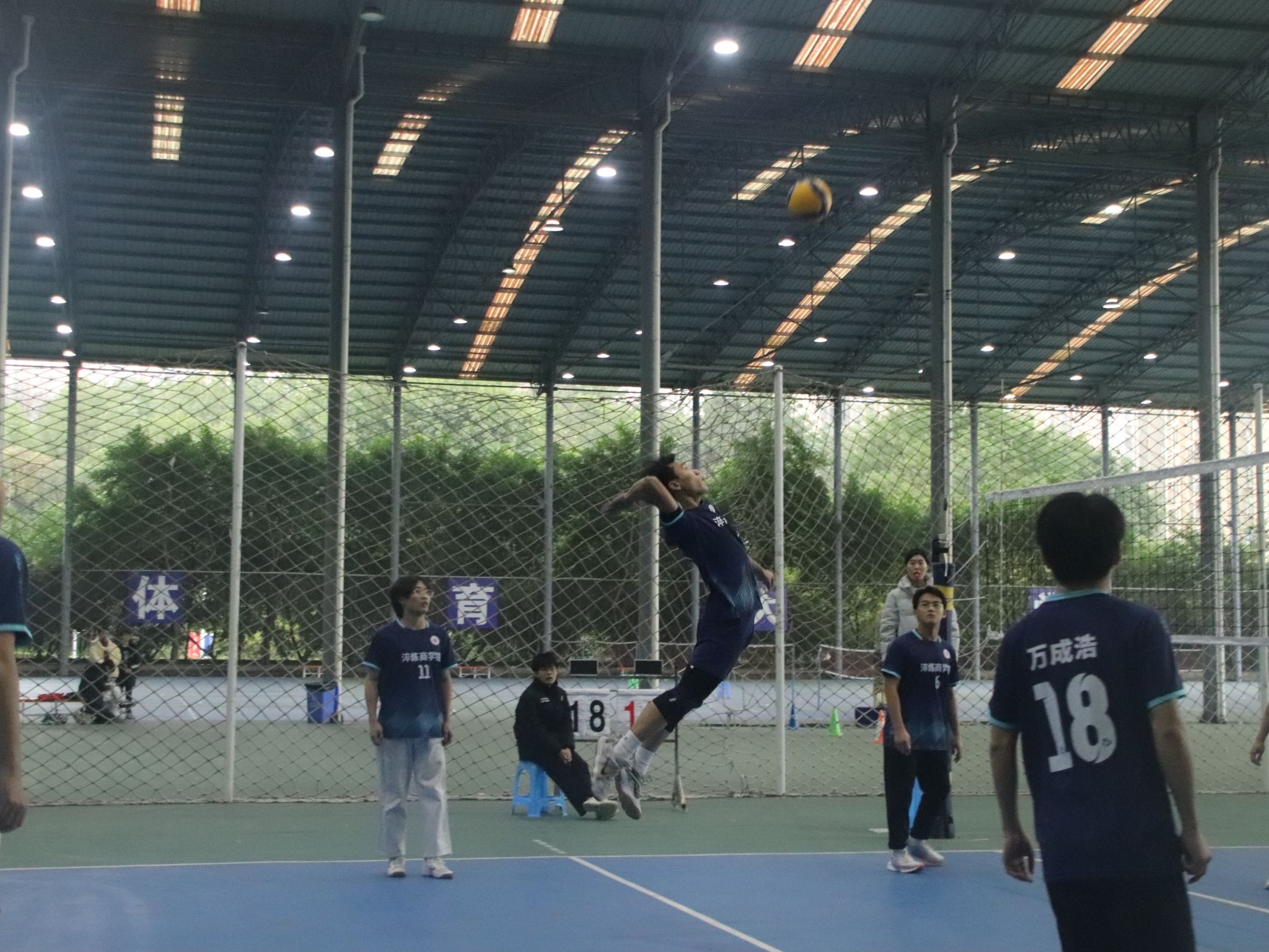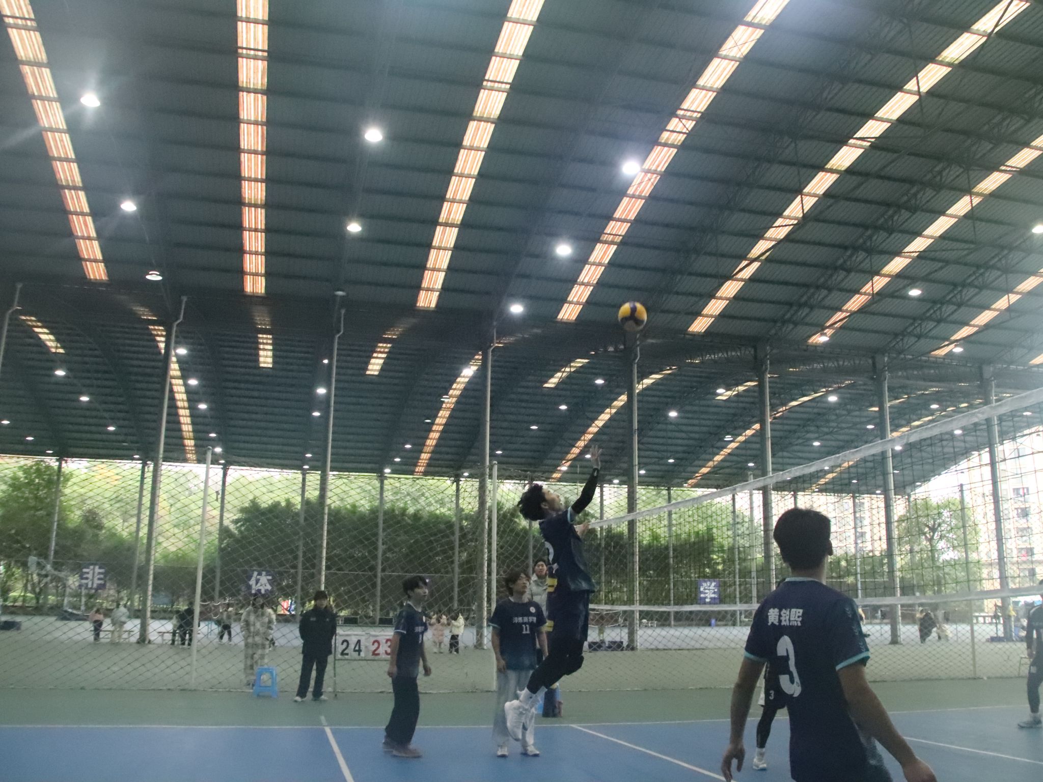 在决赛中,淬炼男排健儿们更是展现出了惊人的实力。赛场上,男排双方激战正酣,比分如影随形,紧咬不放。每一次发球都似利箭出鞘,每一回接球都若泰山稳扛,每一番扣杀都像蛟龙破浪。那比分牌上的数字交替上升,似在进行一场无声的赛跑。一球方落,新球又起,加球之际,更是紧张到令人窒息,队员们眼神如炬,死死盯着排球的轨迹,肌肉紧绷,仿佛下一秒就要爆发出无尽的力量,一心只为在这胶着的战局中撕开一道胜利的口子,让胜利的天平倾向己方。他们的每一分都充满了悬念和紧张。比赛进行到关键时刻,淬炼男排健儿们毫不畏惧,他们以惊人的毅力和团队精神,一次次将比赛的局势扭转。尽管最后遗憾失利,获得了亚军的成绩,但他们却赢得了全场的喝彩和掌声。