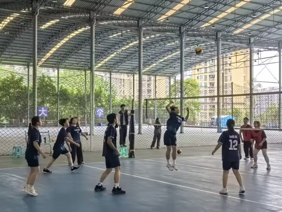 在比赛开始之前,队员们一遍又一遍的进行发球、颠球来熟悉球感,在球场上洋溢着专注与自信,不断调整自己,想要找到最佳的比赛状态,每一次跳跃都凝聚着团队的力量,每一声呐喊都释放着青春的激情。阳光透过人群,微风吹拂树叶一场备受瞩目的排球赛在风雨球场即将展开!