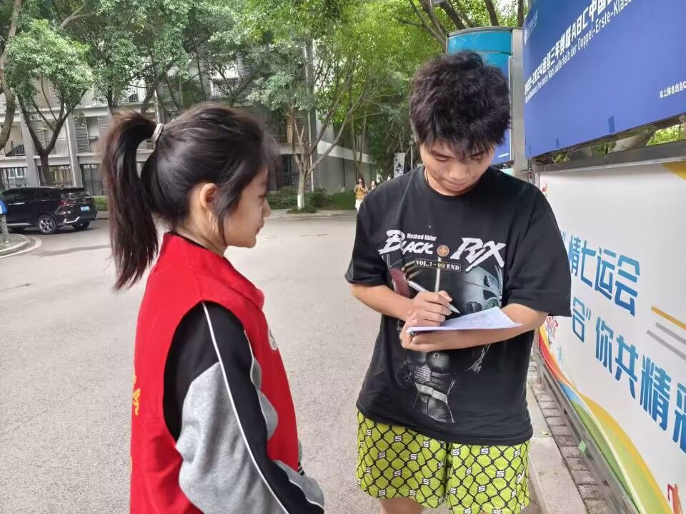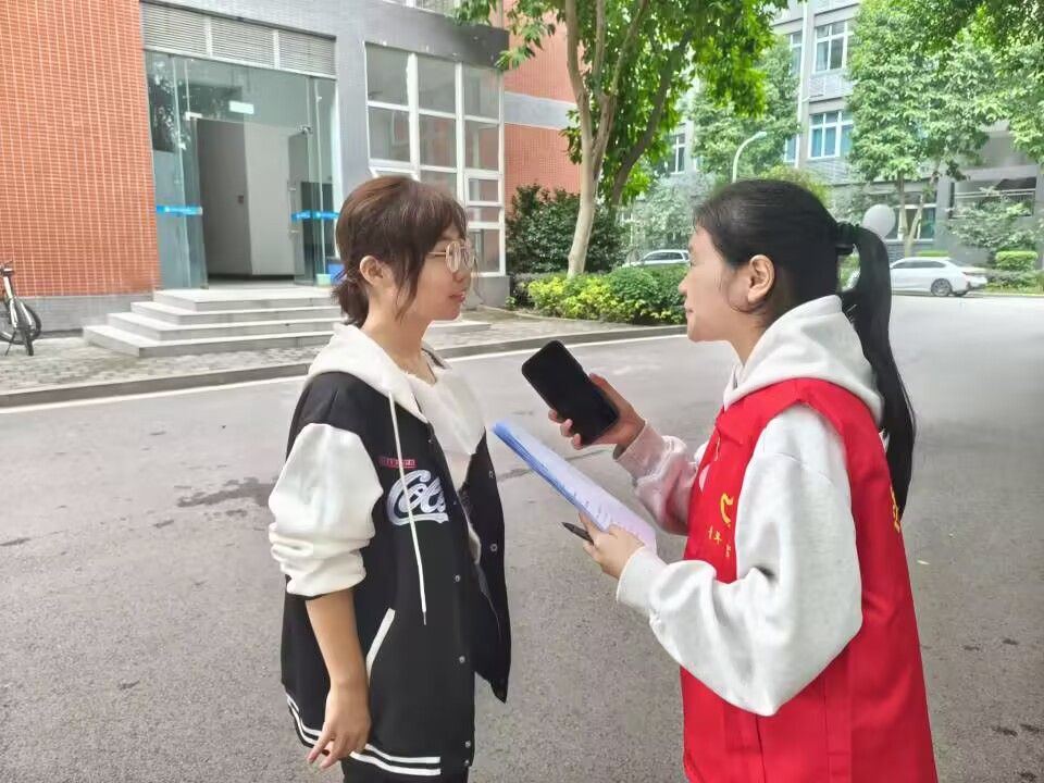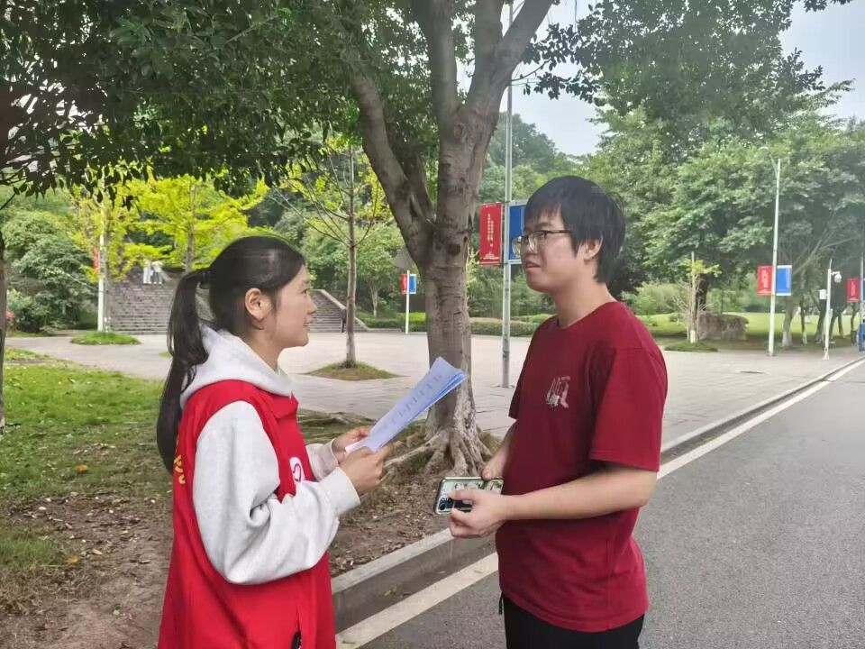 志愿者们两两一组,穿梭于学校的各个地方,确保本次问卷调查能够覆盖尽可能多的学生。志愿者们在收集问卷的同时,也耐心地解答同学们的疑问,让每位参与者都能理解问卷的目的和重要性。活动现场,志愿者们化身热情的小记者,邀请同学们参与采访。志愿者们认真记录着每一个回答,这些来自一线的真实反馈,是此次活动最宝贵的收获。在采访过程中,也不缺乏有趣的小插曲,有的同学一开始略显紧张,在志愿者的引导下逐渐放松,开始活跃起来。通过线下采访的形式,聆听同学们的心声,让“志”在坚“齿”专项支队进一步明晰校园口腔健康的现状与需求。志愿者们收集的采访内容,是完善口腔健康宣讲以及教育活动的重要依据,让口腔健康意识在校园内深深扎根。