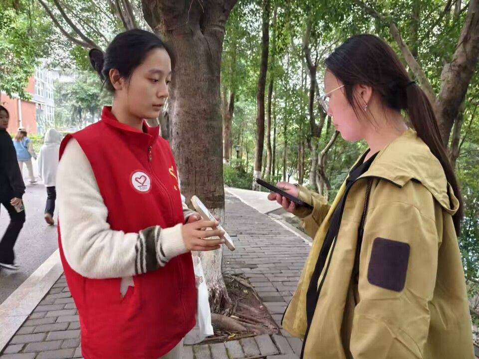 为全方位了解大学生口腔健康状况,切实提升大学生口腔保健意识,2024年11月6日,“志”在“坚”齿健康宣讲志愿服务专项支队在重庆移通学院南北校区举行了“校园口腔健康,责任在你我他”走访调研活动。