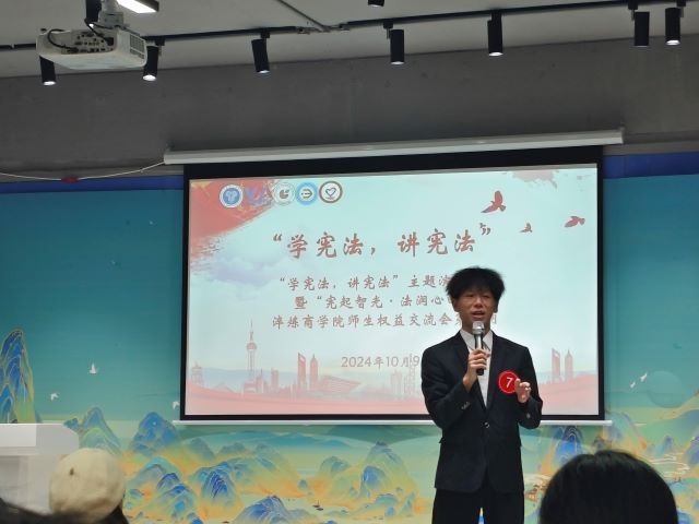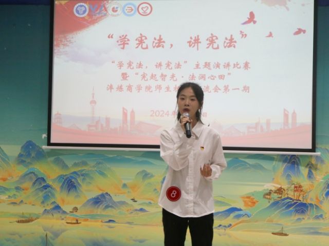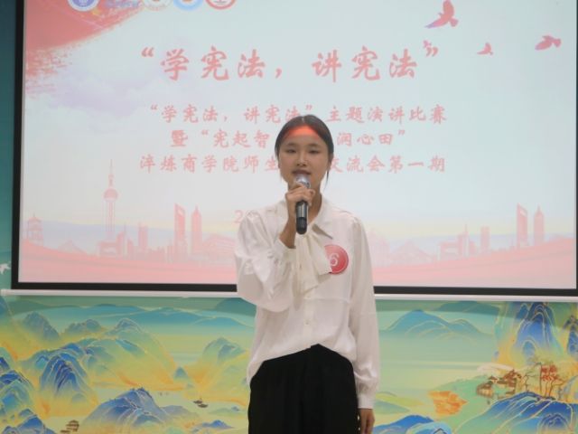 “学宪法,讲宪法”主题演讲比赛准时拉开帷幕,来自不同专业的13选手们汇聚于此,选手们将以自己的声音与激情,深刻诠释对宪法的深邃理解。演讲比赛现场座无虚席,随着比赛的开始,选手们一个更比一个出色,有的结合自身经历,阐述宪法如何影响个人生活;有的援引历史事件,论述宪法的发展历程与关键意义;还有的以激情澎湃的呼吁,号召众人共同遵守宪法,维护宪法权威。